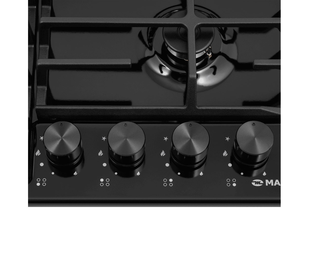 Обновленная встраиваемая газовая варочная панель на 4 конфорки шириной 60 см работает от магистрального газа и газа в баллоне (тип G30), для этого достаточно поставить специальные жиклеры французской фирмы SOURDILLON, имеющиеся в комплекте.Панель выполнена из металла, покрытого термостойкой прочной эмалью черного цвета. В данной модели установлены высококачественные итальянские горелки SABAF. Три стандартные конфорки мощностью 1000 Вт, 1700 Вт, 1700 Вт и одна сверхмощная WOK-конфорка (3800 Вт) с двойным пламенем, спроектированные таким образом, что огонь не перегревает ни чугунные решетки, ни ручки управления.Подача газа и электроподжиг конфорок производится с помощью поворотных полнотелых цельнометаллических ручек, выполненных в цвет панели. Для простоты использования около каждой ручки нанесены информационные изображения: используемая конфорка, подача газа выключена, электроподжиг, максимальное пламя и минимальное пламя.Чугунные решетки с улучшенной эргономикой, за счет крестообразного соединения над конфорками, дают возможность готовить в посуде разного диаметра, не используя специальные подставки. Решетки расположены вплотную друг к другу, образуя единую рабочую зону. Теперь вы можете просто передвинуть посуду с конфорки на конфорку, не поднимая ее. Система газ-контроля надежно защищает бытовой прибор от утечек газа при неожиданном затухании конфорки.