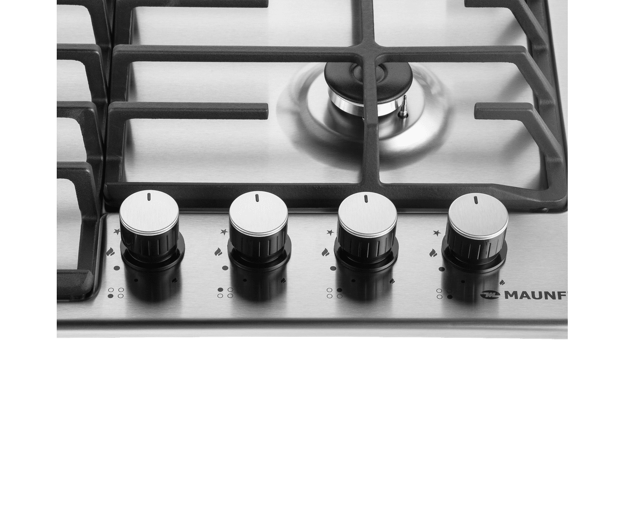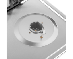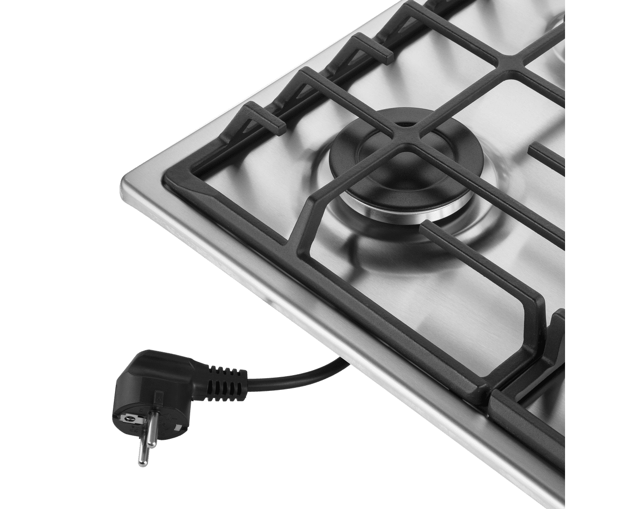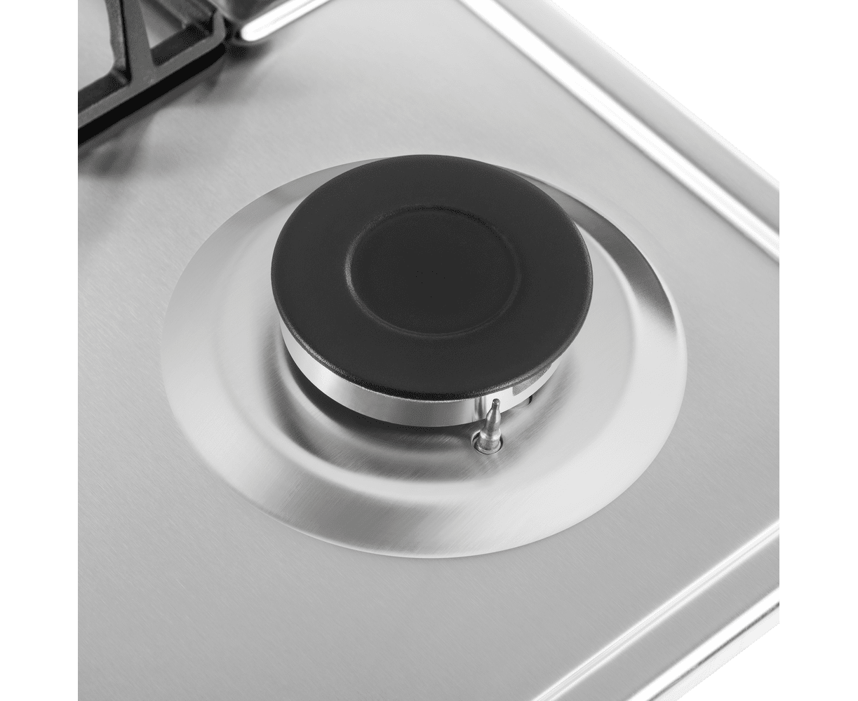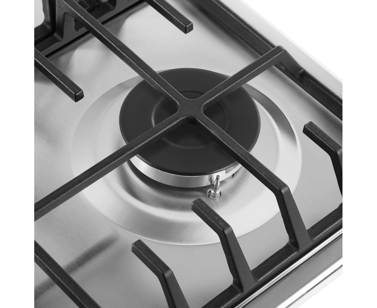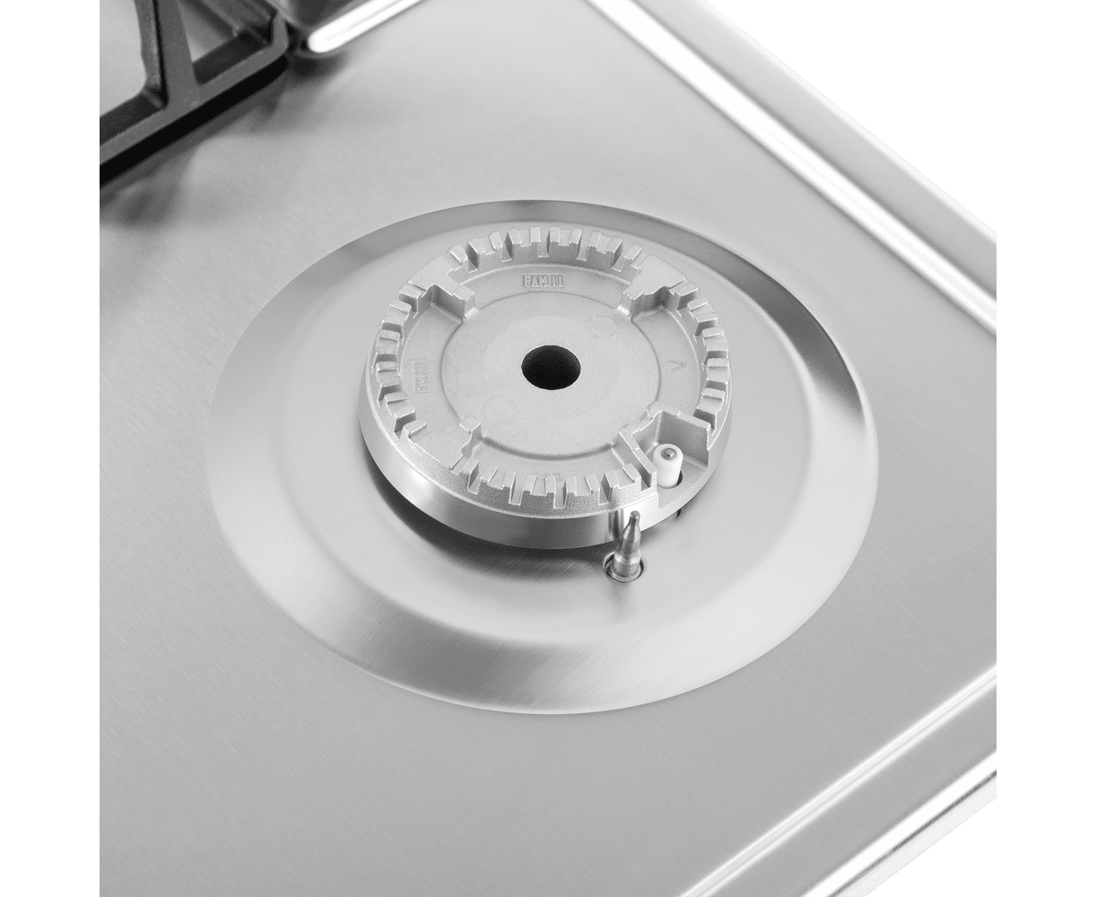 Панель выполнена из нержавеющей стали. Четыре итальянские конфорки SABAF мощностью 1000 Вт, 1700 Вт, 1700 Вт и 2600 Вт спроектированы таким образом, что огонь не перегревает ни чугунные решетки, ни ручки управления.