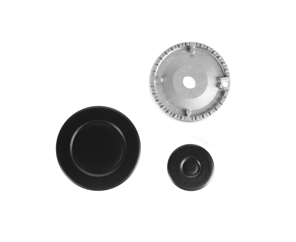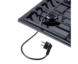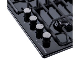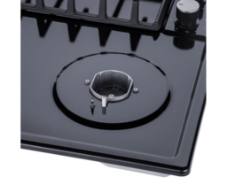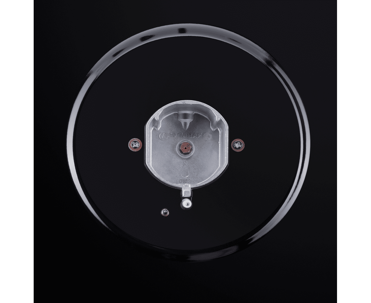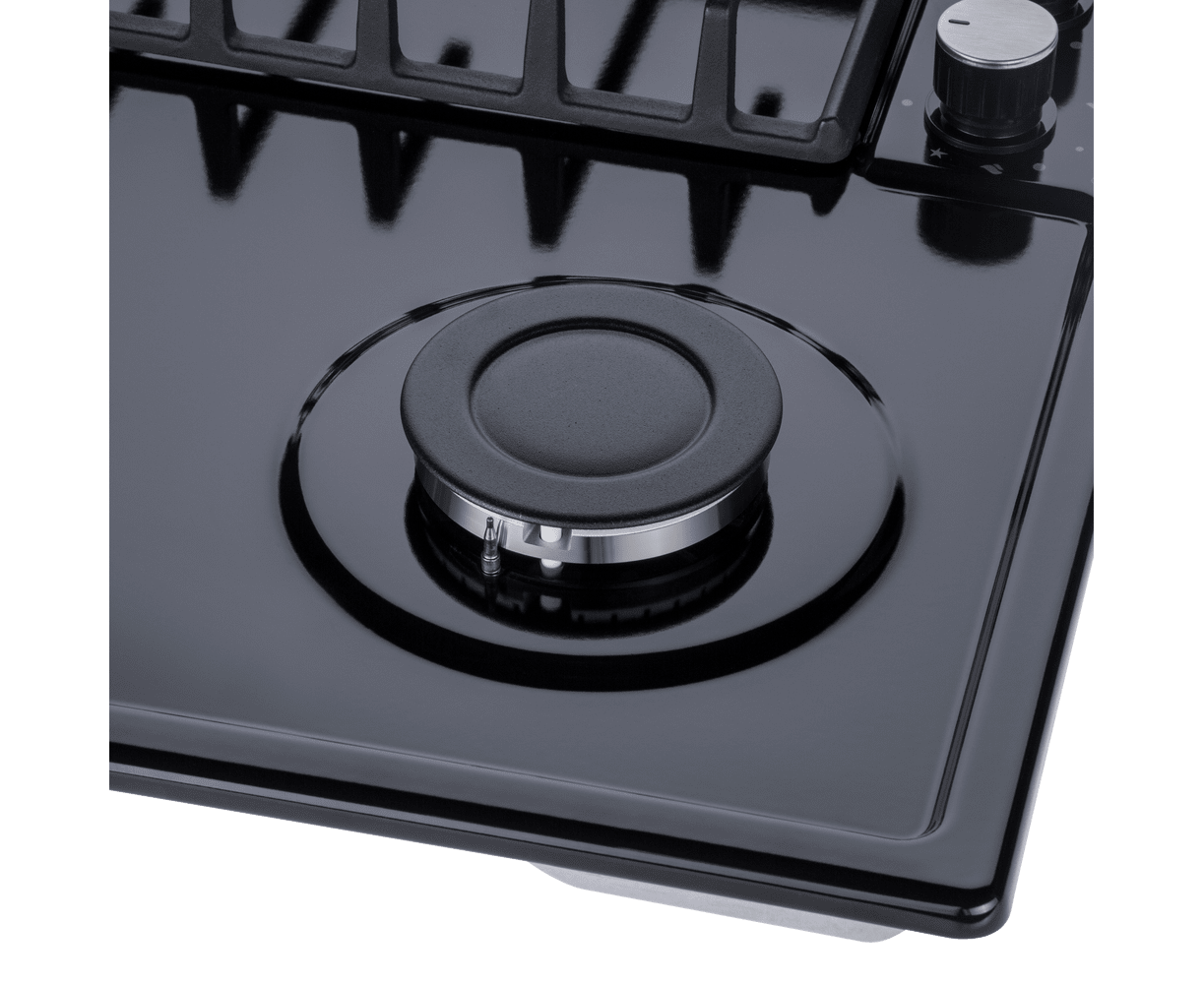 Панель выполнена из металла, покрытого термостойкой прочной эмалью черного цвета. Четыре стандартные итальянские конфорки SABAF мощностью 1000 Вт, 1700 Вт, 1700 Вт и 2600 Вт спроектированы таким образом, что огонь не перегревает ни чугунные решетки, ни ручки управления.