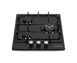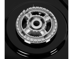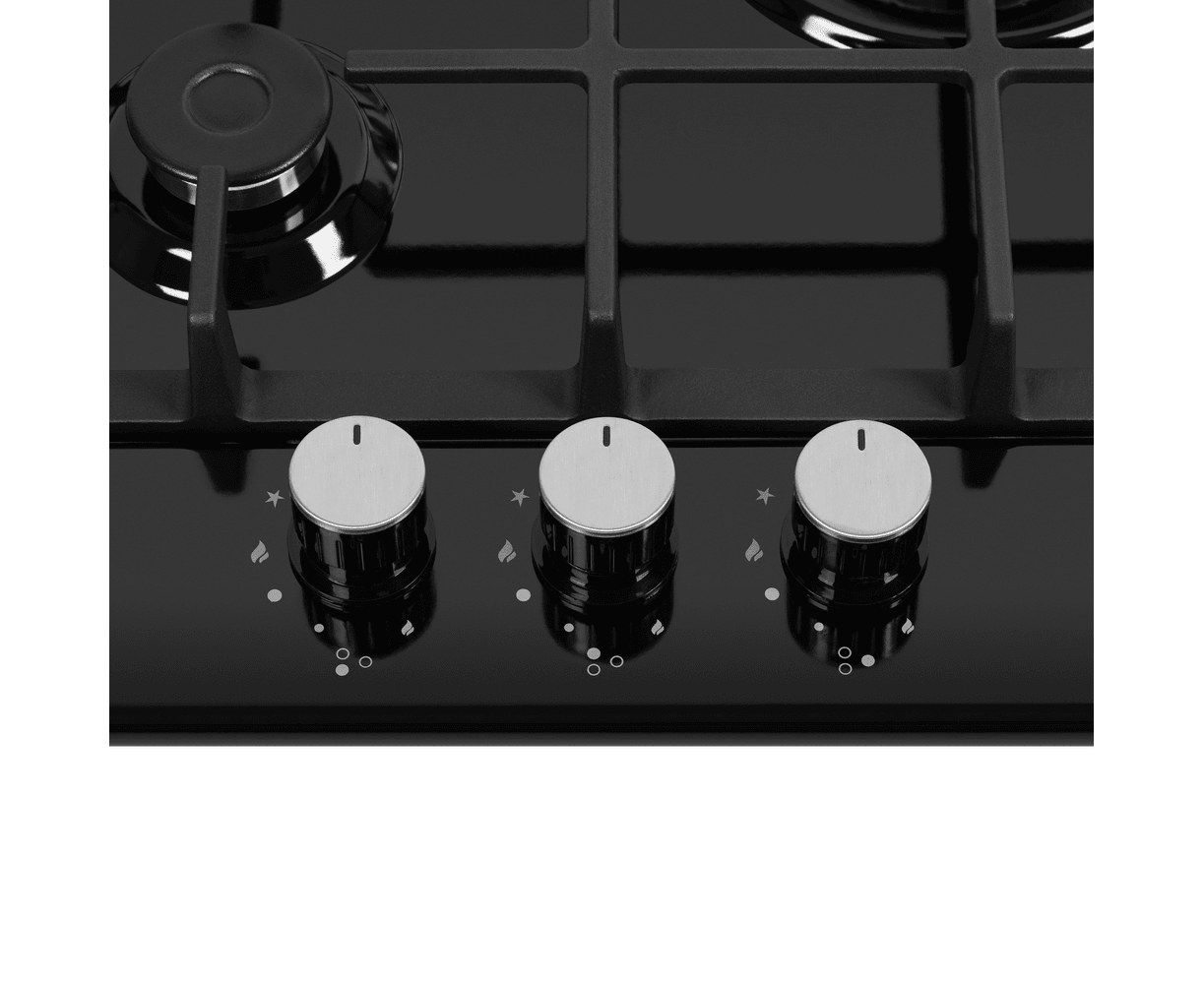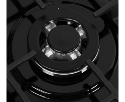 Панель выполнена из высококачественной нержавеющей стали, покрытой прочной эмалью черного цвета. В данной модели установлены итальянские горелки SABAF (3 конфорки). Две стандартные конфорки мощностью 1000 Вт, 1700 Вт и одна мощная WOK-конфорка с двойным пламенем мощностью 3000 Вт.