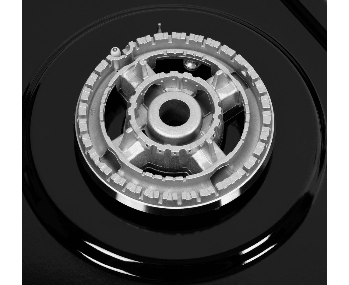 Система газ-контроля надежно защищает бытовой прибор от утечек газа при неожиданном затухании конфорки. Включение варочной панели осуществляется с помощью электроподжига.