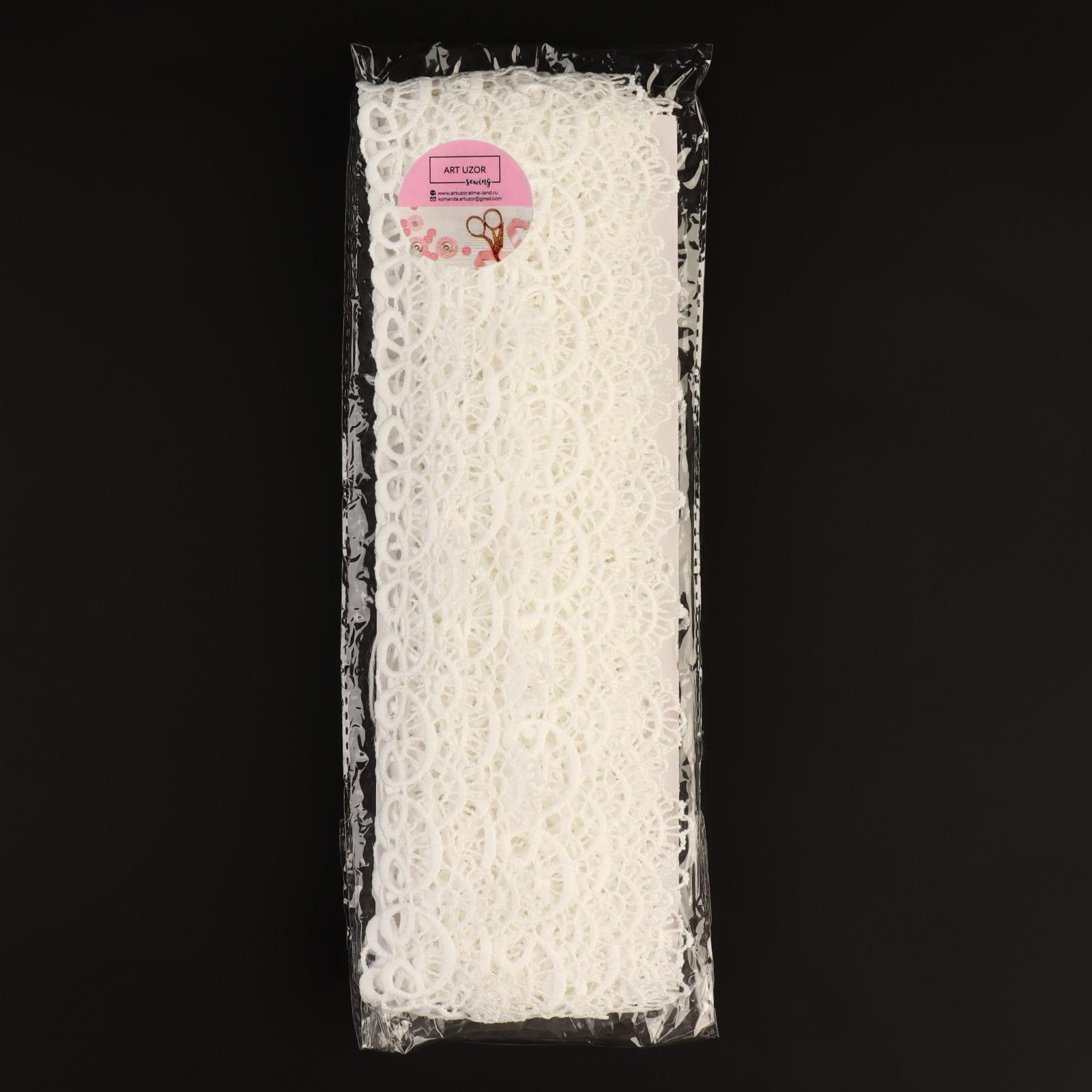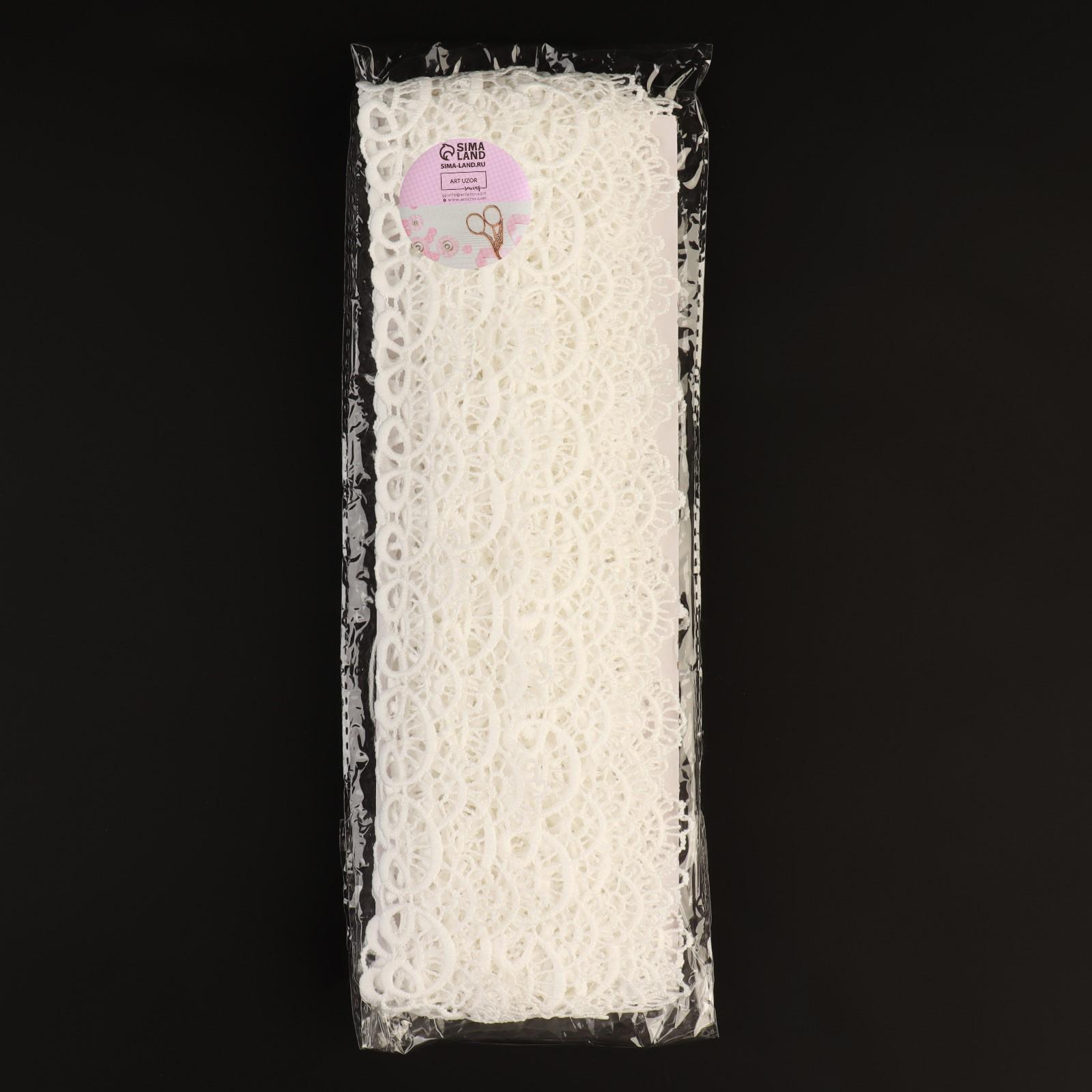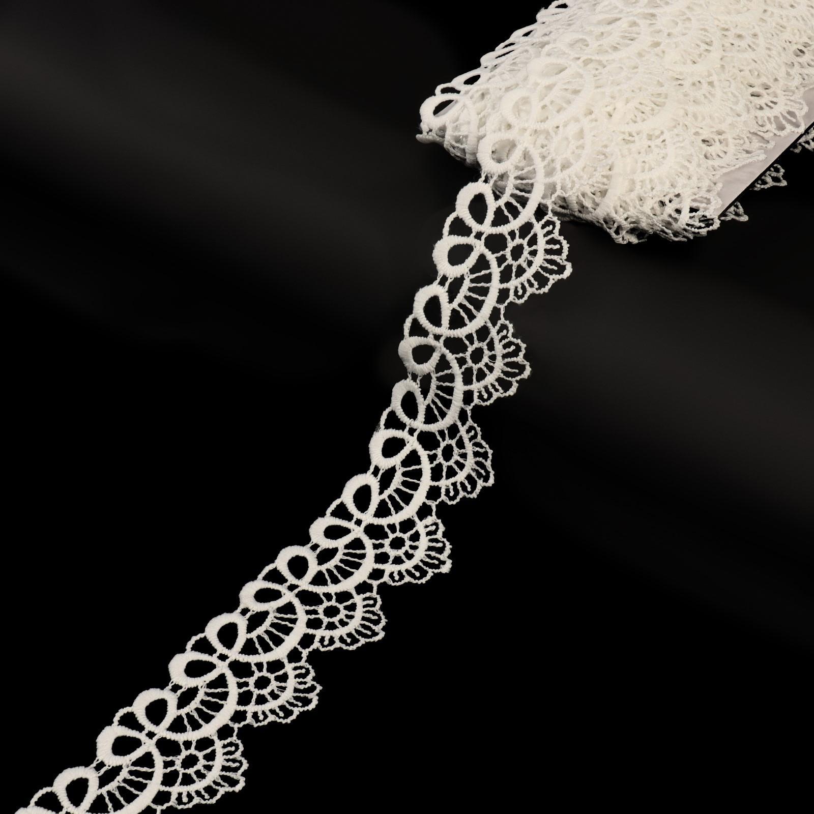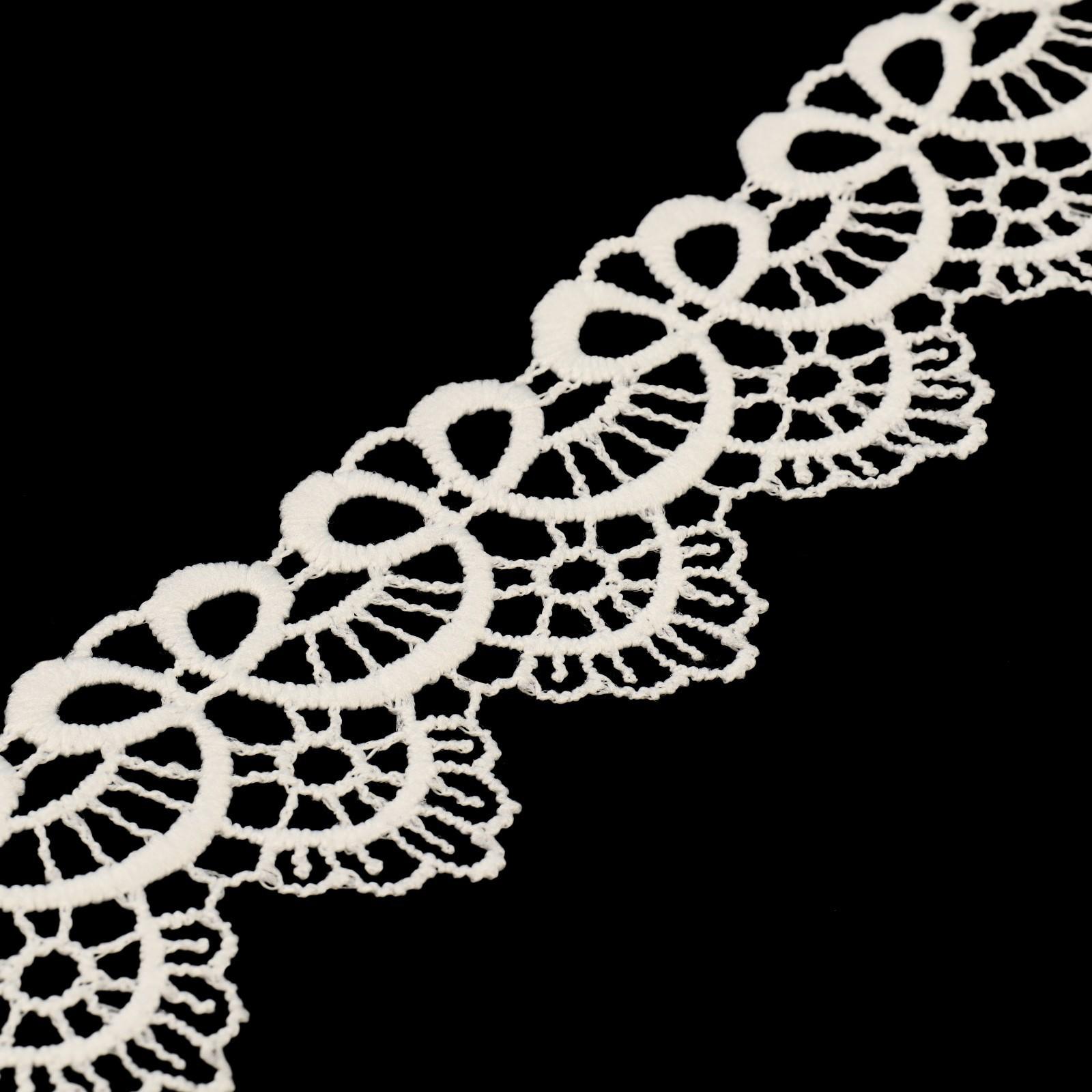 Кружево гипюровое, 35 мм × 14 ± 1 м, цвет молочный