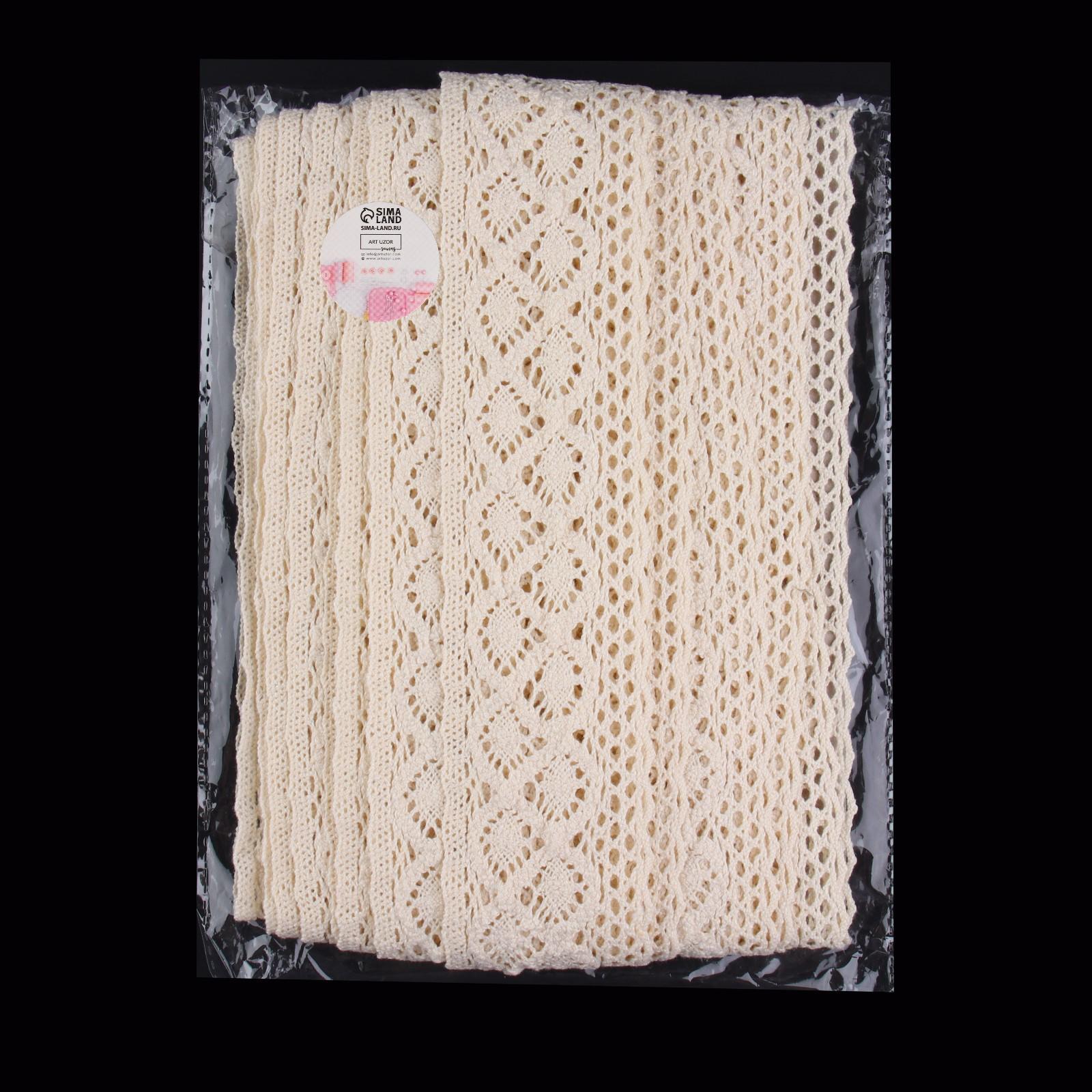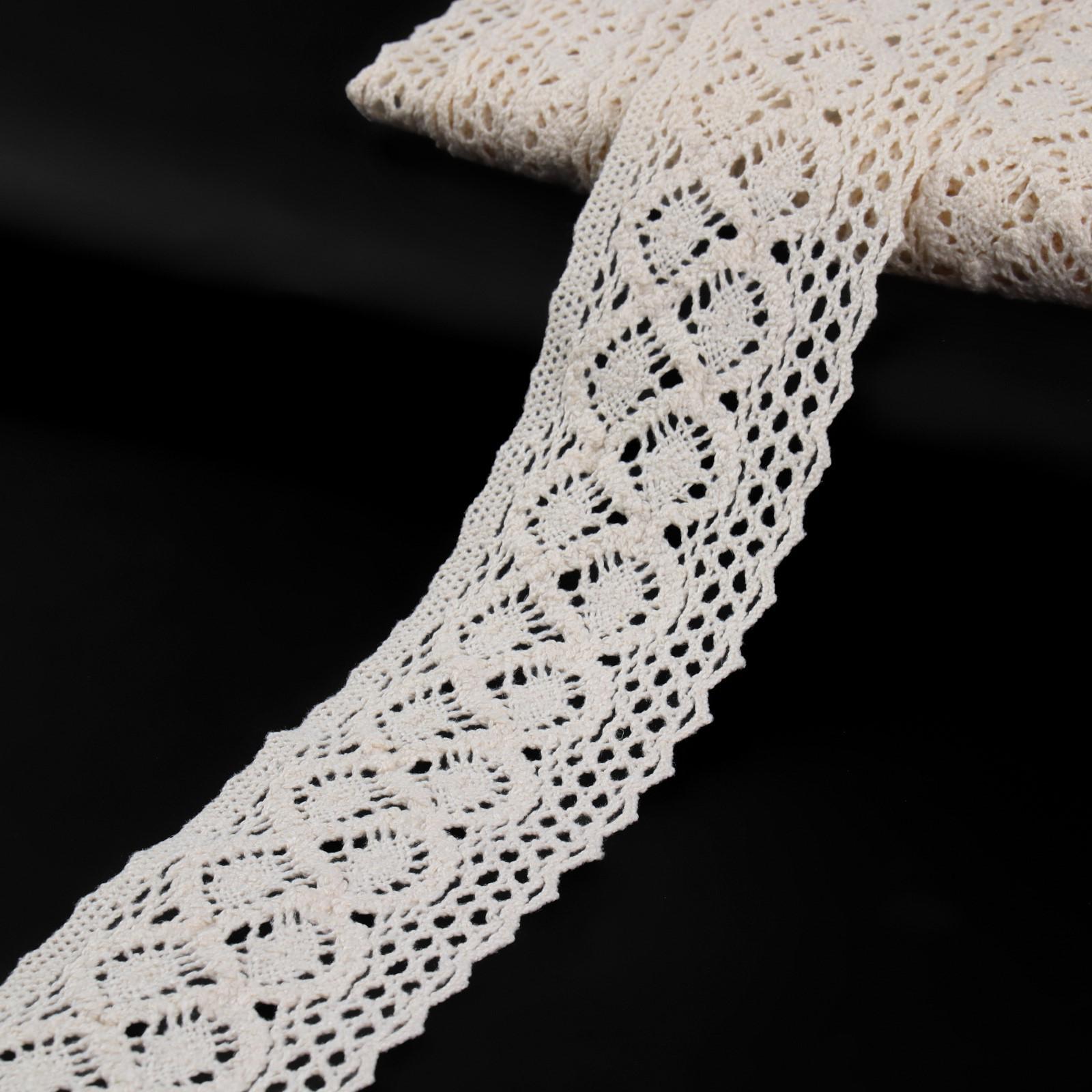 Кружево вязаное, 50 мм × 10 ± 1 м, цвет бежевый