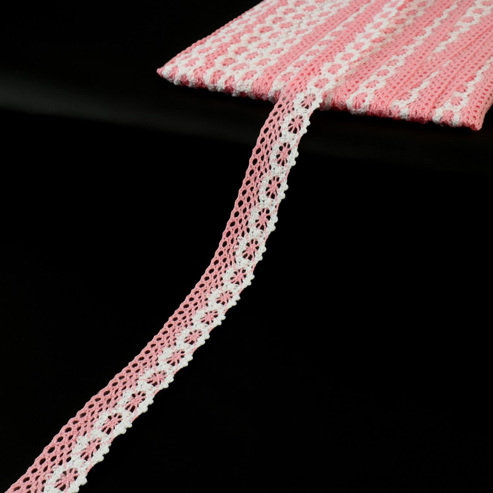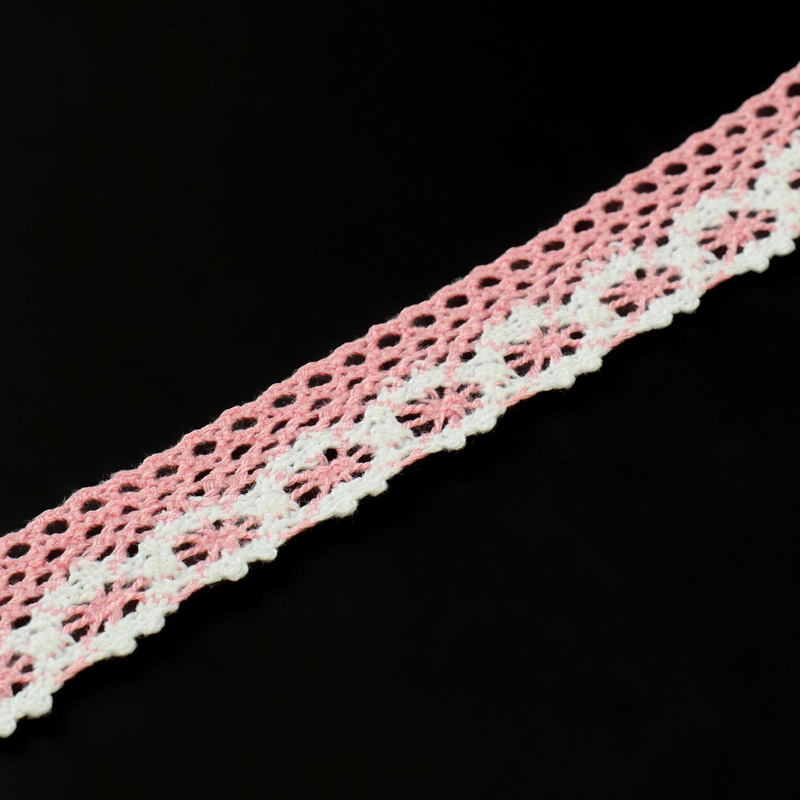 Кружево вязаное, 20 мм × 15 ± 1 м, цвет розовый/белый