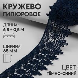 Кружево гипюровое, 65 мм × 6,8 ± 0,5 м, цвет тёмно-синий