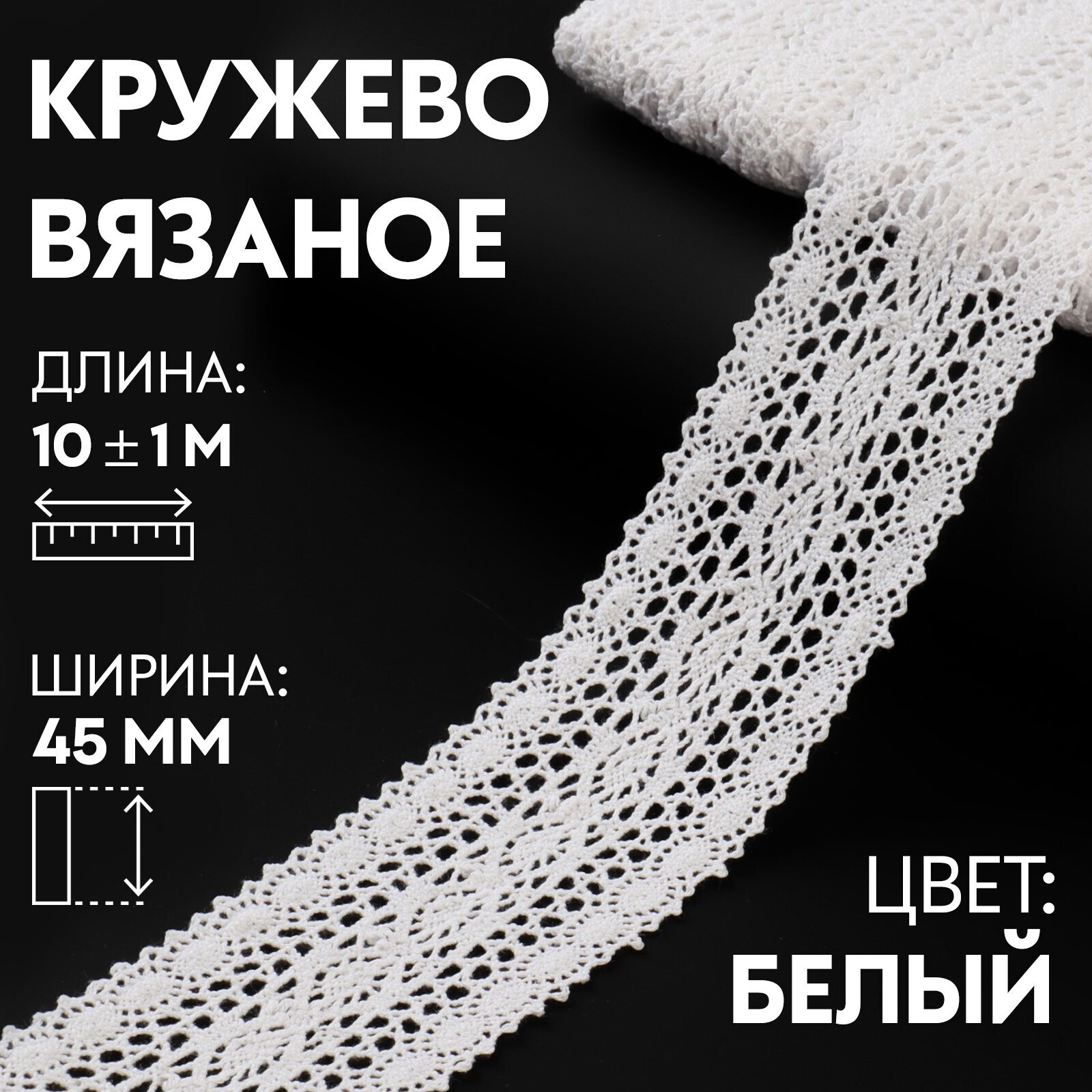 Кружево вязаное, 45 мм × 10 ± 1 м, цвет кипенно-белый