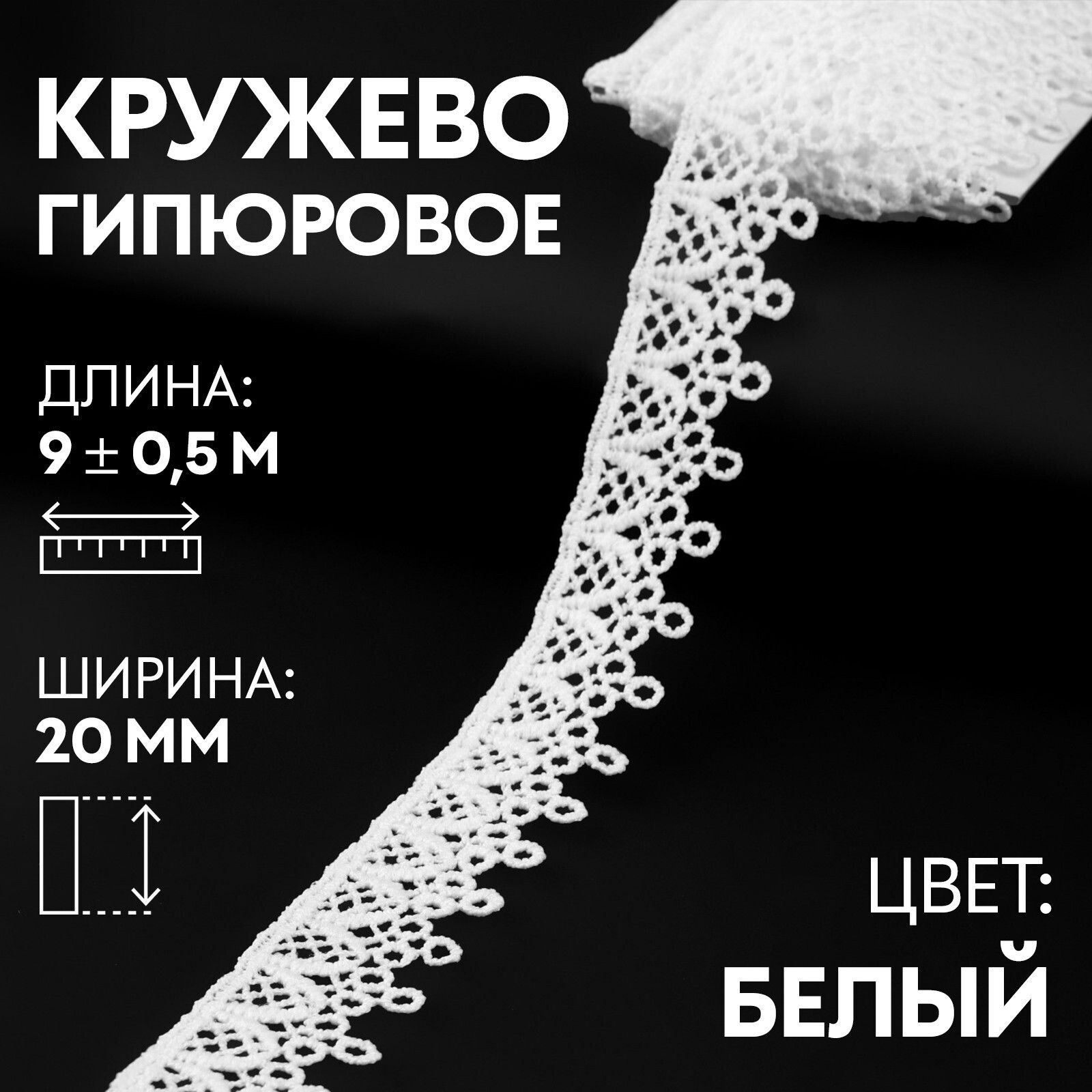 Кружево гипюровое, 20 мм × 9 ± 0,5 м, цвет молочный