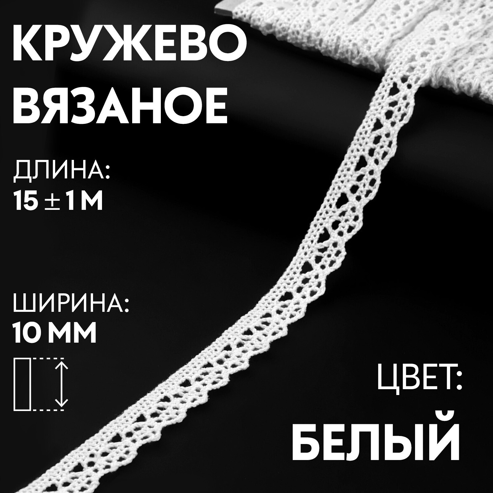 Кружево вязаное, 10 мм × 15 ± 1 м, цвет кипенно-белый