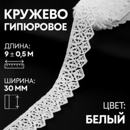 Кружево гипюровое, 30 мм × 9 ± 0,5 м, цвет молочный