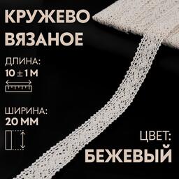 Кружево вязаное, 20 мм × 10 ± 1 м, цвет бежевый