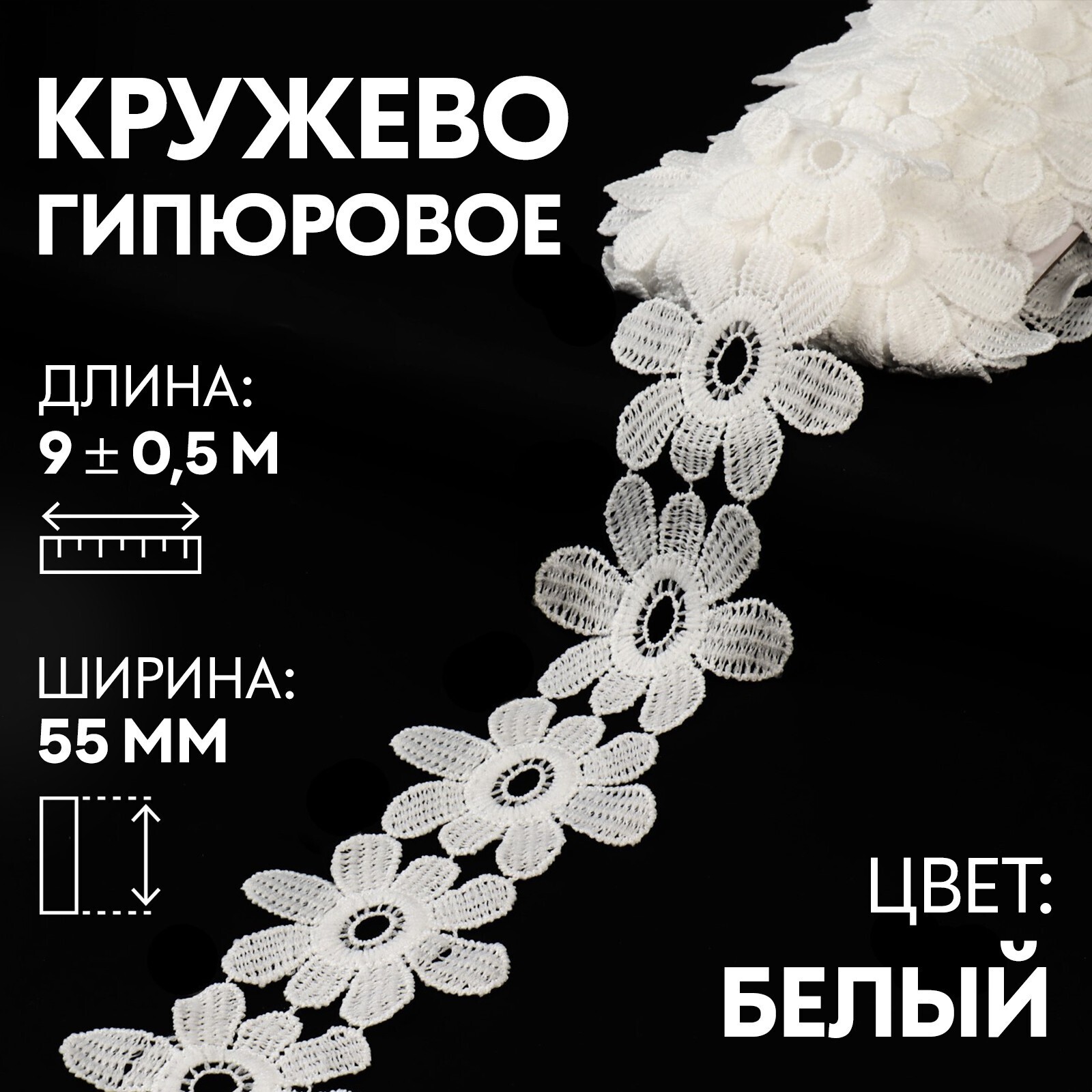 Кружево гипюровое, 55 мм × 9 ± 0,5 м, цвет молочный