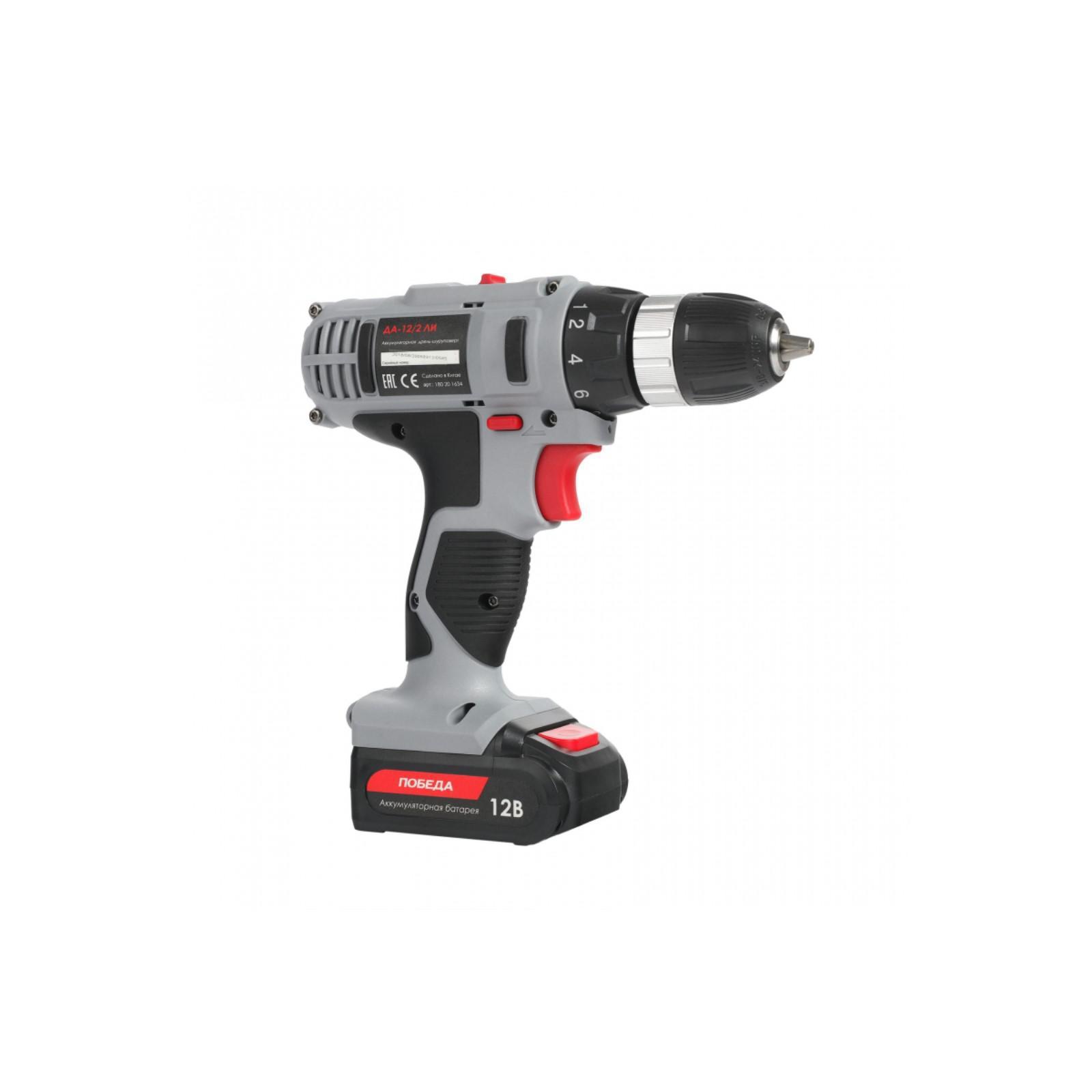 Дрель-шуруповерт аккумуляторная ПОБЕДА ДА-12/2Ли, 12 В, 2.2 Ач ,Li-Ion, 32 Нм, 1490 об/мин
