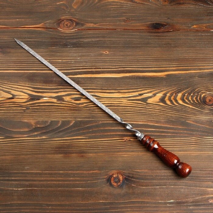Шампур с деревянной ручкой, металл - 3 мм, ширина - 12 мм, рабочая длина - 40 см