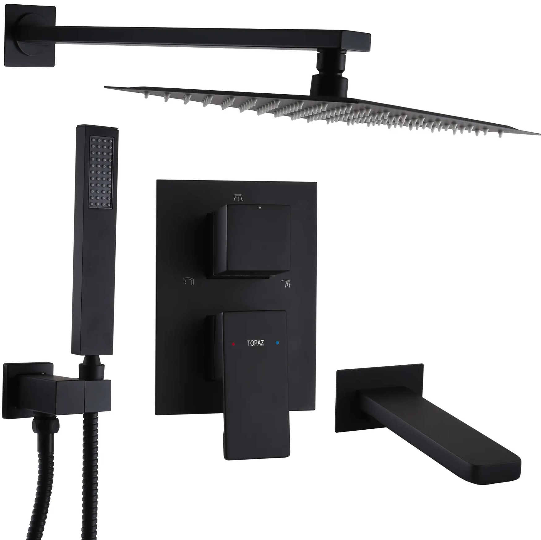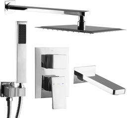 • Комплектация ручной душ (душевая лейка)верхний душ (тропический)смесительизливдушевой шлангкрепление ручного душанастенный кронштейн