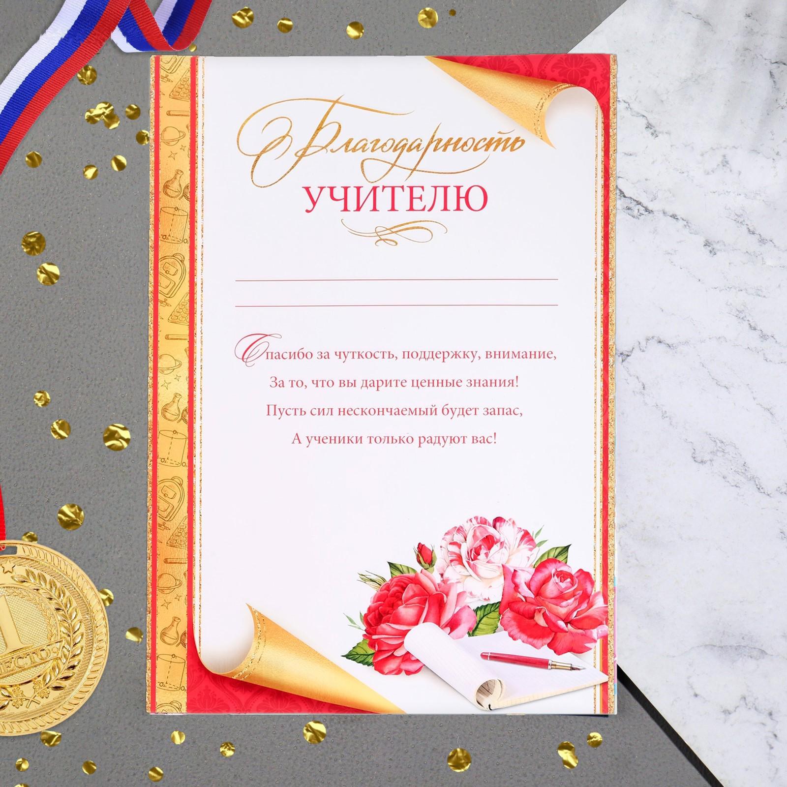 Благодарность учителю "Универсальная" текст, цветы, А4