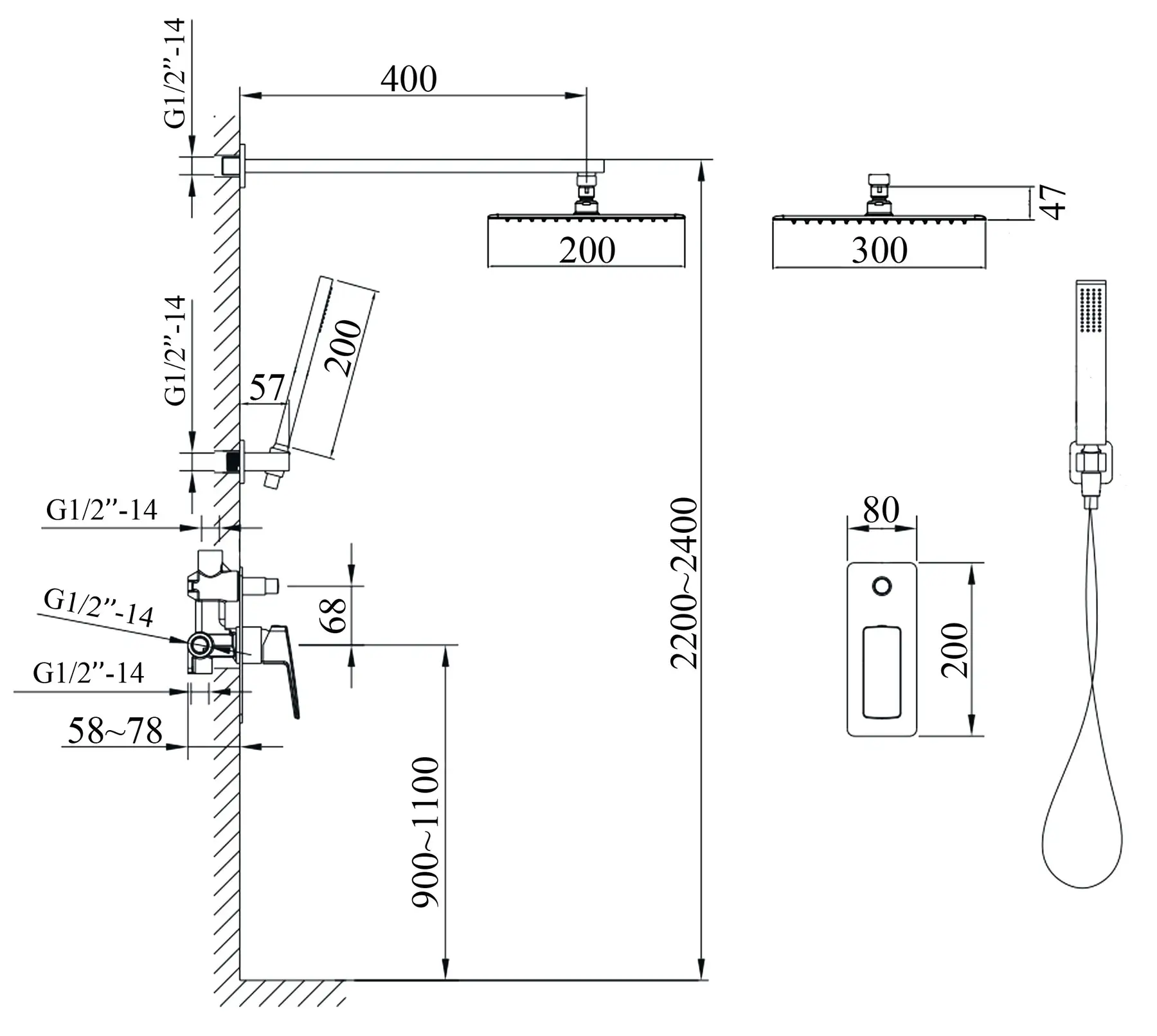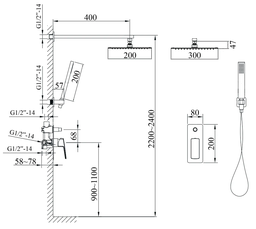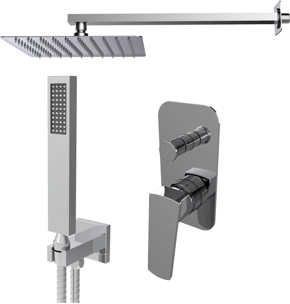 • Комплектация ручной душ (душевая лейка)верхний душ (тропический)смесительдушевой шлангкрепление ручного душанастенный кронштейн