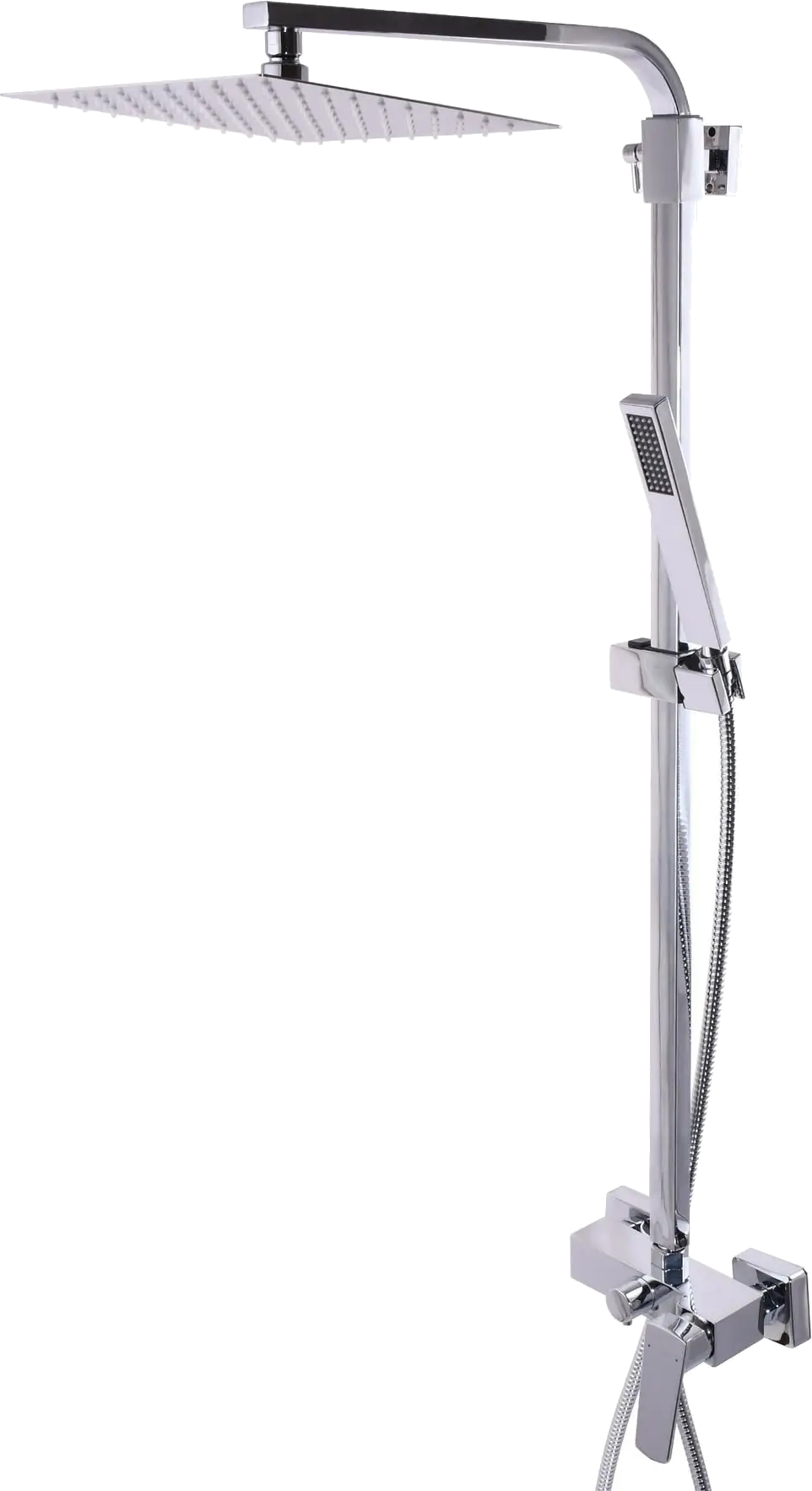Комплектацияручной душ (душевая лейка)верхний душ (тропический)смесительстойка / штангадушевой шлангкрепление ручного душаполка / в виде верхней части смесителя /