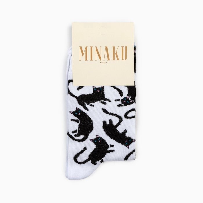 Носки женские MINAKU "Котики", цвет белый, размер 40-41 (27 см)