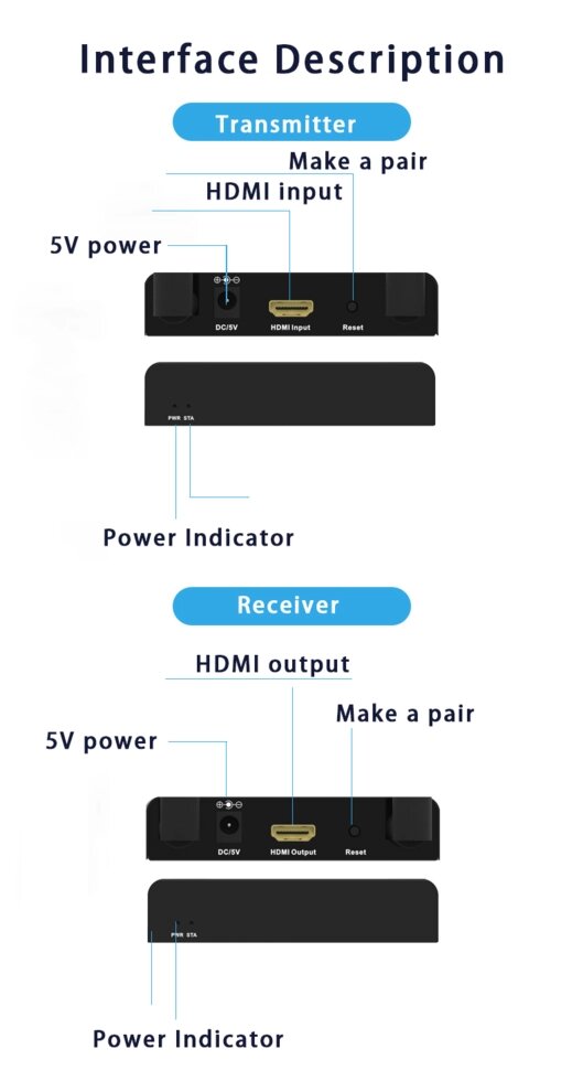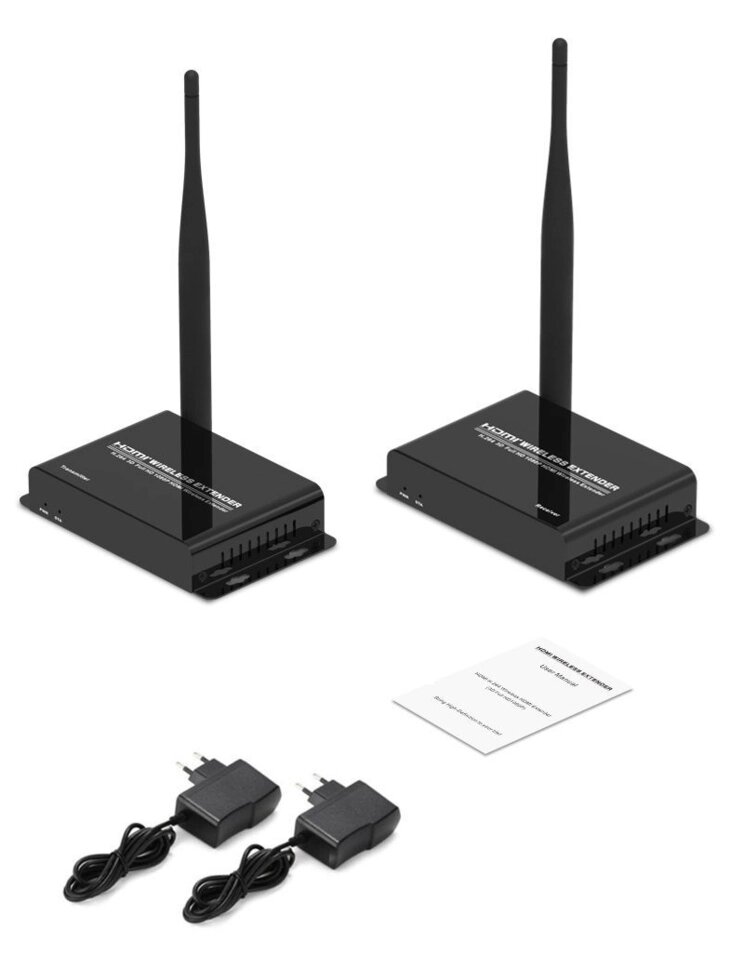 Удлинитель сигнала HDMI по Wi-Fi до 100м, активный, FullHD 1080p, комплект, черный