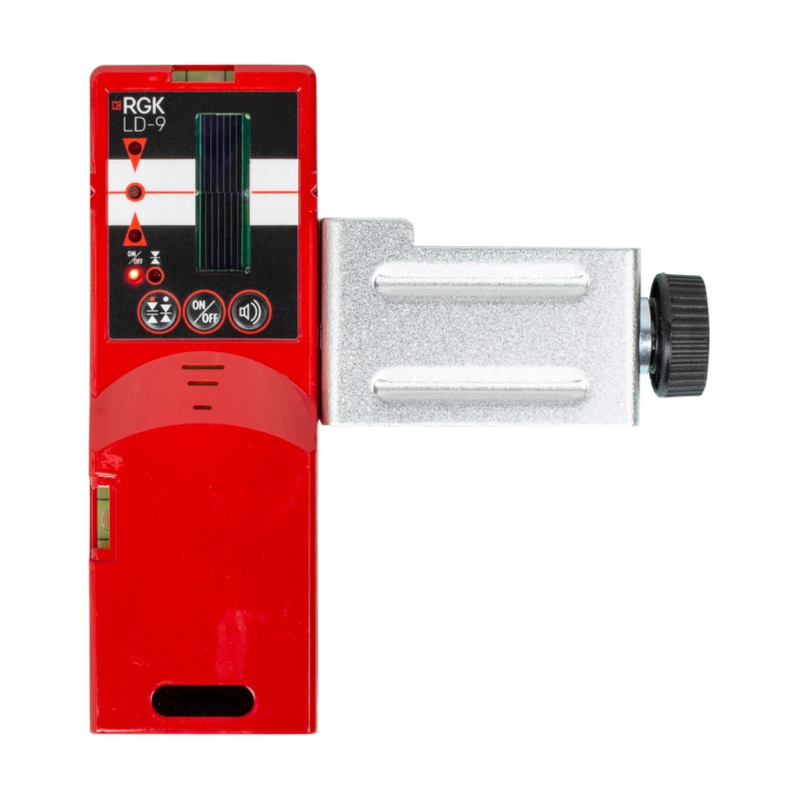 Универсальный приемник излучения RGK LD-9 с односторонним дисплеем для лазерных нивелиров (построителей плоскости) работает с приборами, когда лазерная плоскость невидима, и служит для увеличения рабочего диапазона лазерных нивелиров до 50-70 м.
