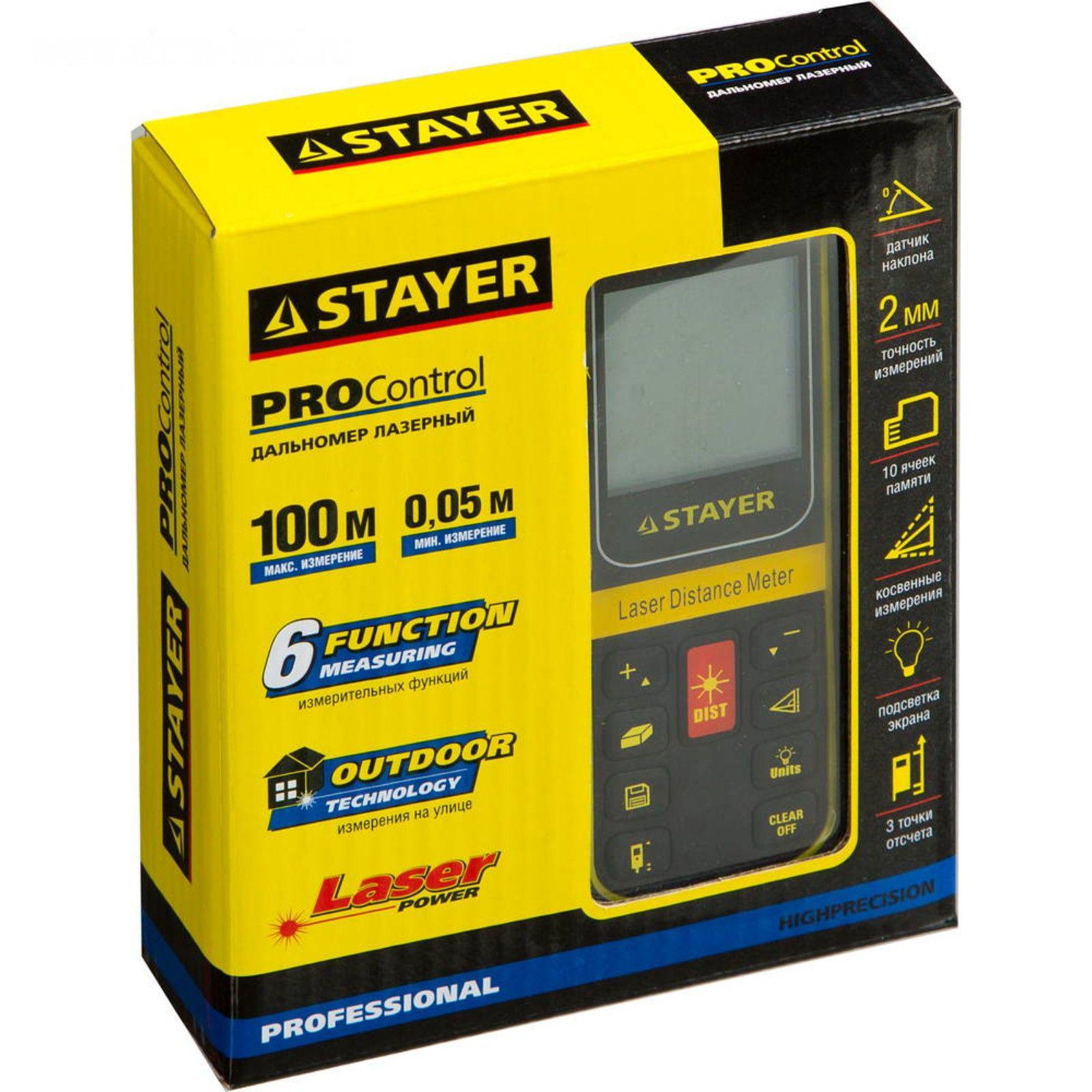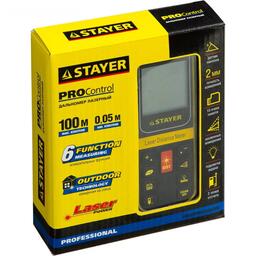 Дальномер STAYER PROFESSIONAL PRO-Control, лазерный, 100 м, точность ± 2 мм