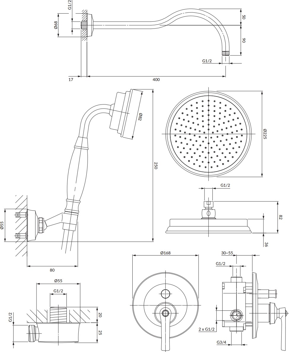 - Комплектация ручной душ (душевая лейка)верхний душ (тропический) / Omnires ARMANCE WGARMANCECR /смеситель / Omnires Armance AM5235CR /душевой шлангкрепление ручного душанастенный кронштейн / арт. RA06CR /