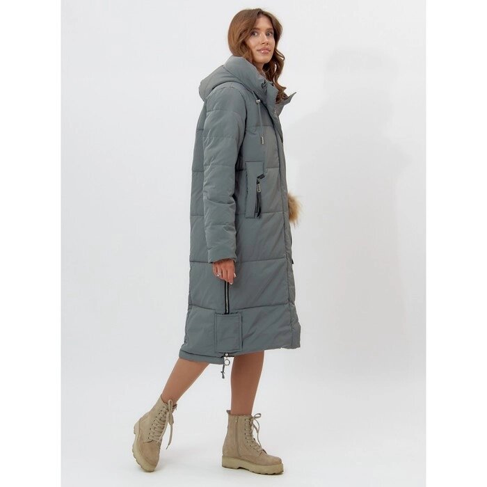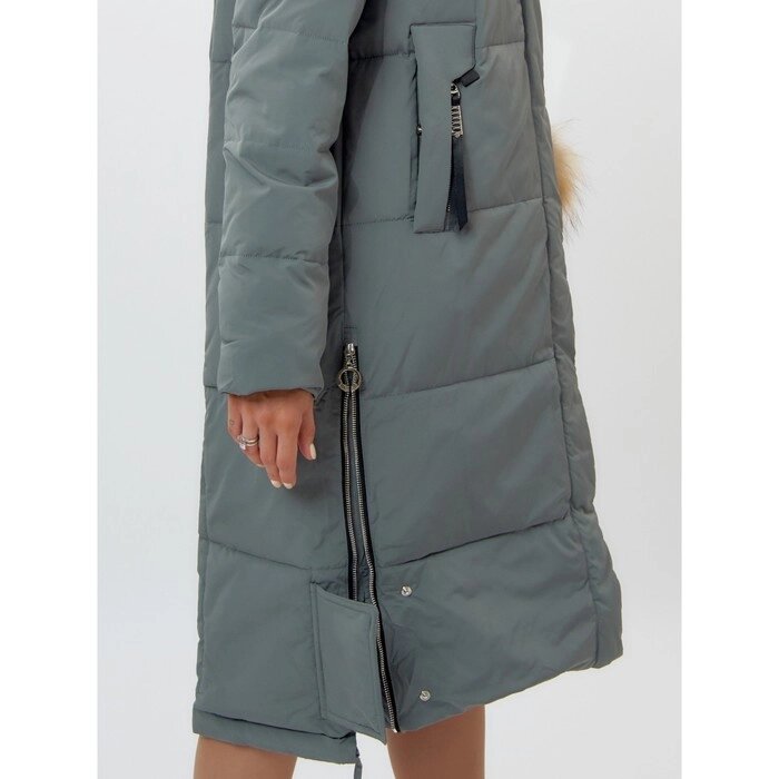 Пальто утеплённое, цвет хаки, размер 52