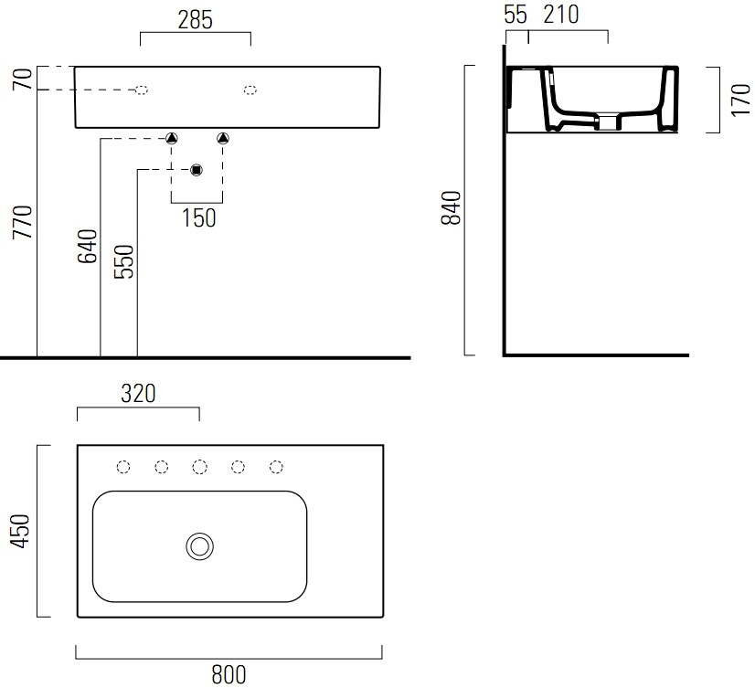- Тип монтажа подвеснойнакладной на столешницуврезной в столешницу
