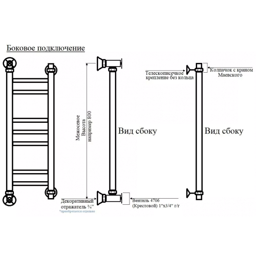 Полотенцесушитель Маргроид Вид 61 Дуга боковое подключение, форма - лесенка, отлично впишется в любой по стилю интерьер ванной комнаты.