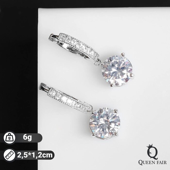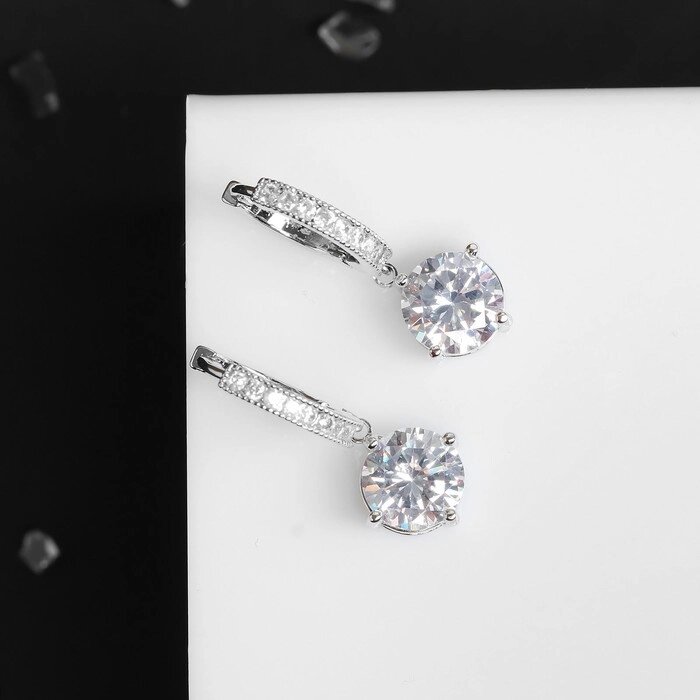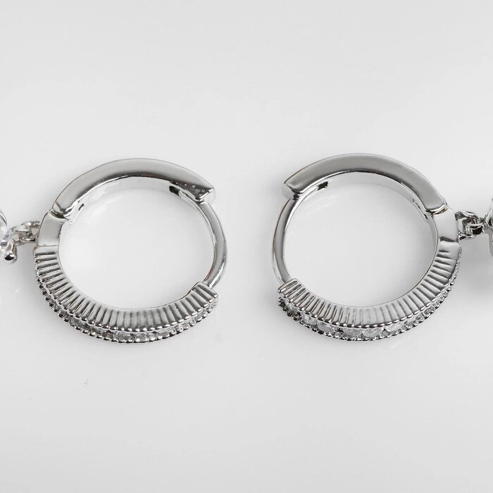 Серьги со стразами "Блум" полукруглое крепление, цвет белый в серебре