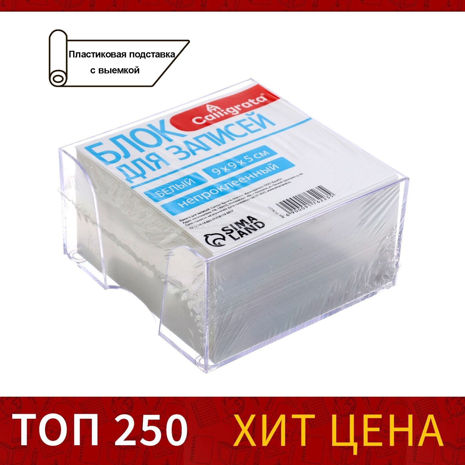 Блок бумаги для записей, 9х9х5, белый, 65 г/м2, белизна 92%, в пластиковом прозрачном боксе