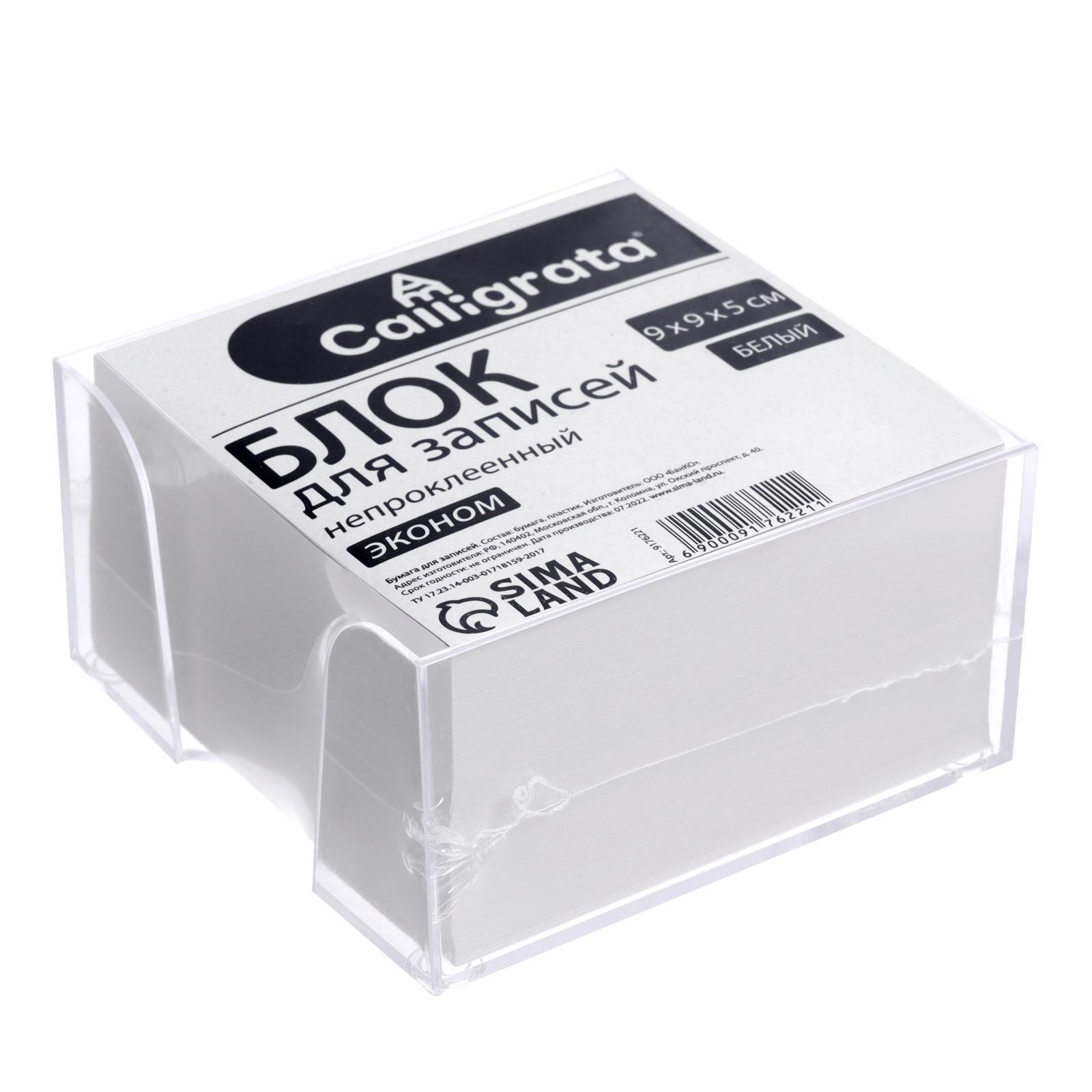 Блок бумаги д/записей 9х9х5 Calligrata белый 65г/м2 белиз 70-80%, в пласт прозр боксе