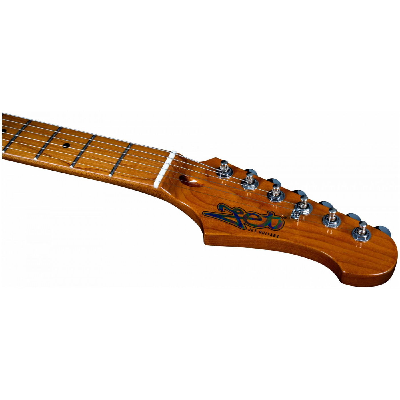 JET - это новый бренд электрогитар, созданный чтобы удовлетворить музыкантов всех уровней и способностей. Вдохновленные классическими электрогитарами высочайшего класса, гитары JET предлагают современный подход к дизайну и стилю со свежим и впечатляющим выбором цветов, отделки и высококачественной древесины. Самое главное, гитары JET дадут вам превосходные впечатления от игры по доступной цене.. JET JS-300 это инструмент в классической и самой популярной форме корпуса - Стратокастер. У инструментов JS-300 профиль грифа - Modern C. Это наиболее распространенный современный профиль грифа, у таких грифов удобный овальный профиль, который подходит для большинства стилей игры. Накладка на гриф выполнена из печеного клена (roasted maple). При такой обработке поры дерева максимально сжимаются и в процессе использования вода уже не будет выходить, ваша накладка не сожмется и лады не повылазят вне зависимости от влажности и смены температуры. Плюс такое дерево выглядит очень красиво.
