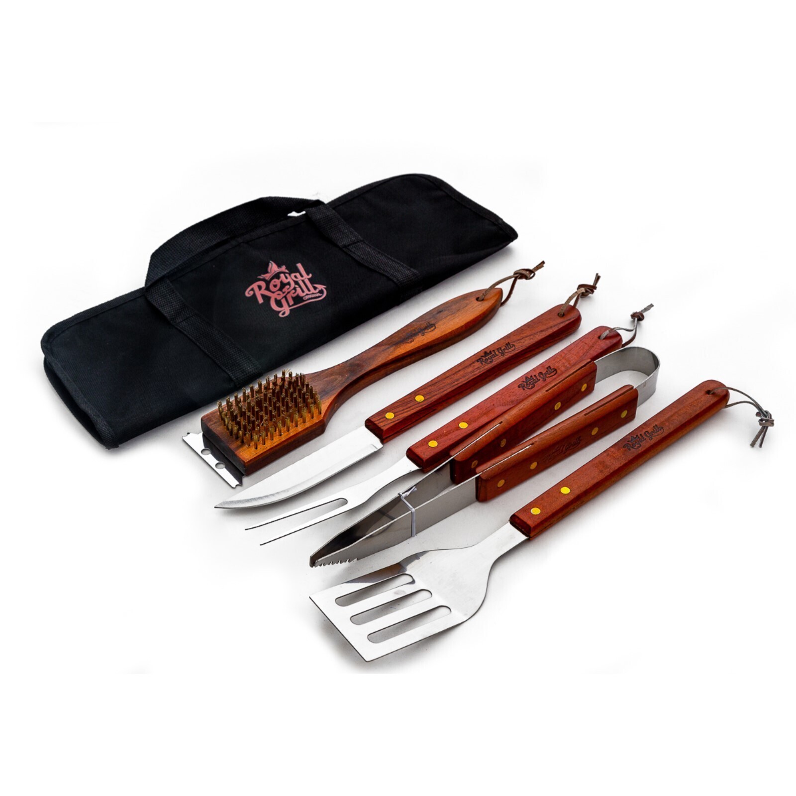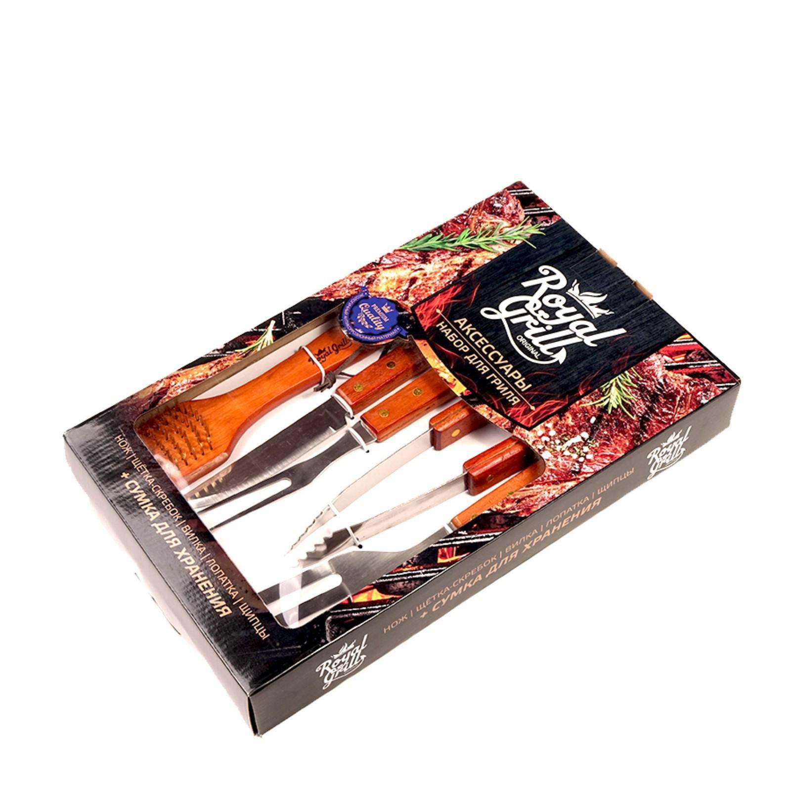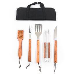 Набор аксессуаров для гриля, 5 предметов, сумка: вилка, лопатка, щипцы, щетка-скребок, нож