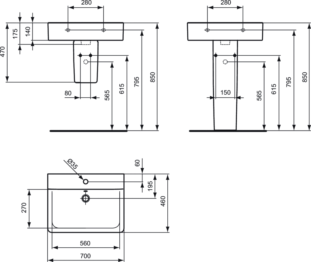 - Тип монтажа подвеснойнакладной на столешницу