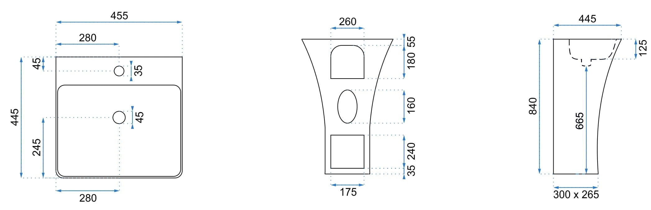 - Диаметр отверстия под смеситель 35 мм