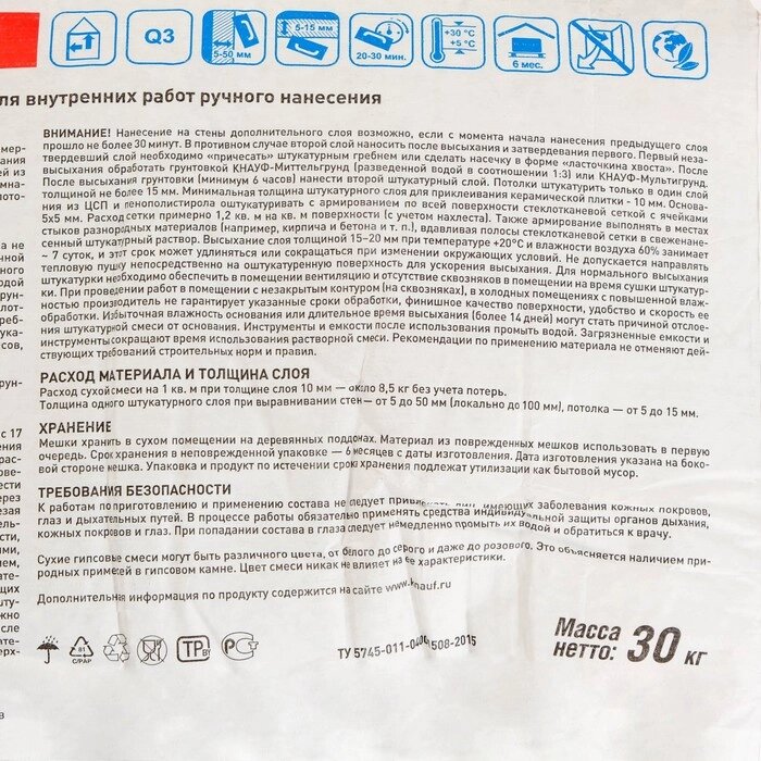 Штукатурка гипсовая универсальная Кнауф Ротбанд (Knauf Rotband), 30кг