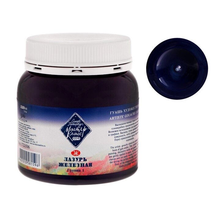 Гуашь художественная банка 220мл, ЗХК Мастер-Класс 1723506 Лазурь железная