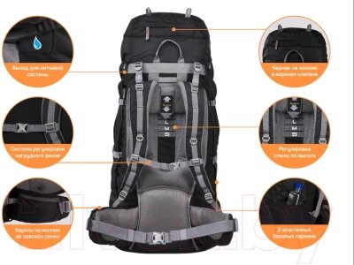 Дополнительные элементысистема вентиляции, клапан, светоотражающие элементы, внешний карман, отделение для питьевой системы, боковой карман, накидка от дождя, крепление для ледоруба/трекинговых палок, крепление для снаряжения, нижний вход
