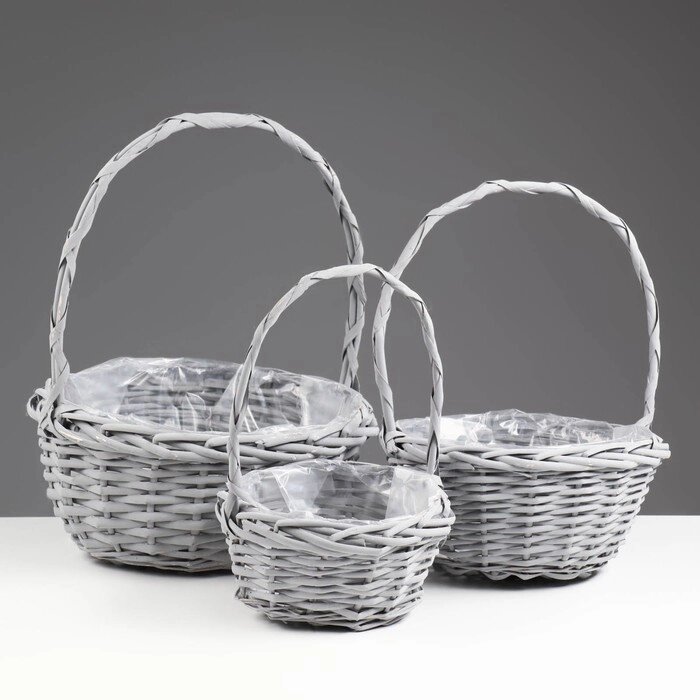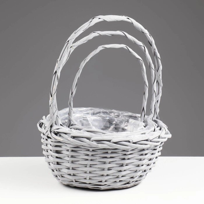 Набор плетеных корзин, 28х14/35х20, 23х12/30х15, 18х10/25х12.5, 3 шт, серый, ива