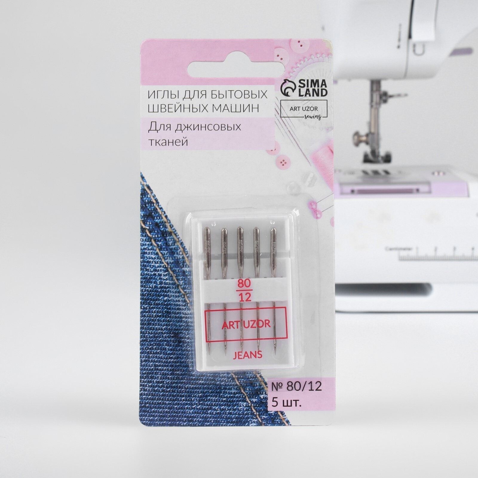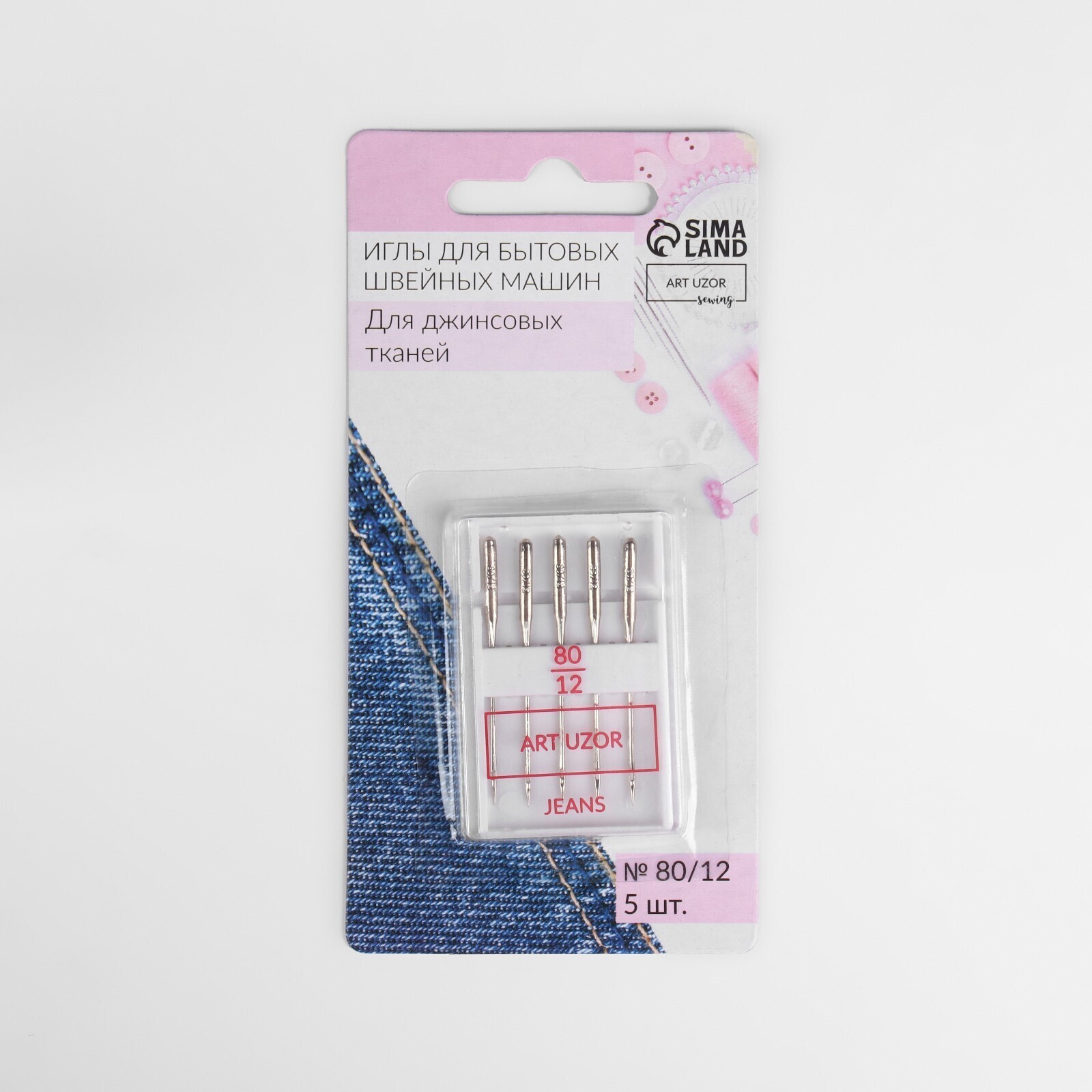 Иглы для бытовых швейных машин, для джинсовых тканей, №80/12, 5 шт