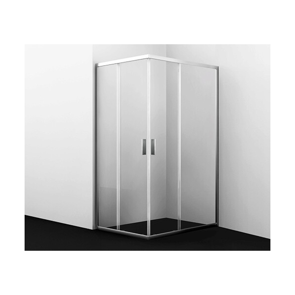 Закаленное прозрачное стекло 6 мм. Раздвижной механизм из нержавеющей стали. Анодированный алюминиевый профиль 39 мм. Ручки дверей из алюминия и ABS-пластика. Регулирующий профиль до 15 мм. Механизм легкой чистки. Силиконовый уплотнитель дверей с магнитным замком. Силиконовые уплотнители. Внимание! Поддон в комплект не входит