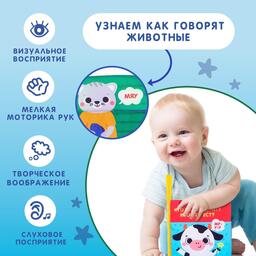 Занимательная мягкая книжка игрушка станет первой любимой мягкой книгой для малыша. Ваш малыш будет с удовольствием шуршать и изучать не только картинки и представителей мира животных, но и развивать мелкую моторику рук, ведь это еще и шуршащая игрушка, мягкая игрушка. В этом вам помогут милые и яркие герои, подвижные и шуршащие элементы.