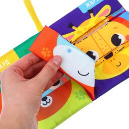 Занимательная мягкая книжка игрушка станет первой любимой мягкой книгой для малыша. Ваш малыш будет с удовольствием шуршать и изучать не только картинки и представителей мира животных, но и развивать мелкую моторику рук, ведь это еще и шуршащая игрушка, мягкая игрушка. В этом вам помогут милые и яркие герои, подвижные и шуршащие элементы.