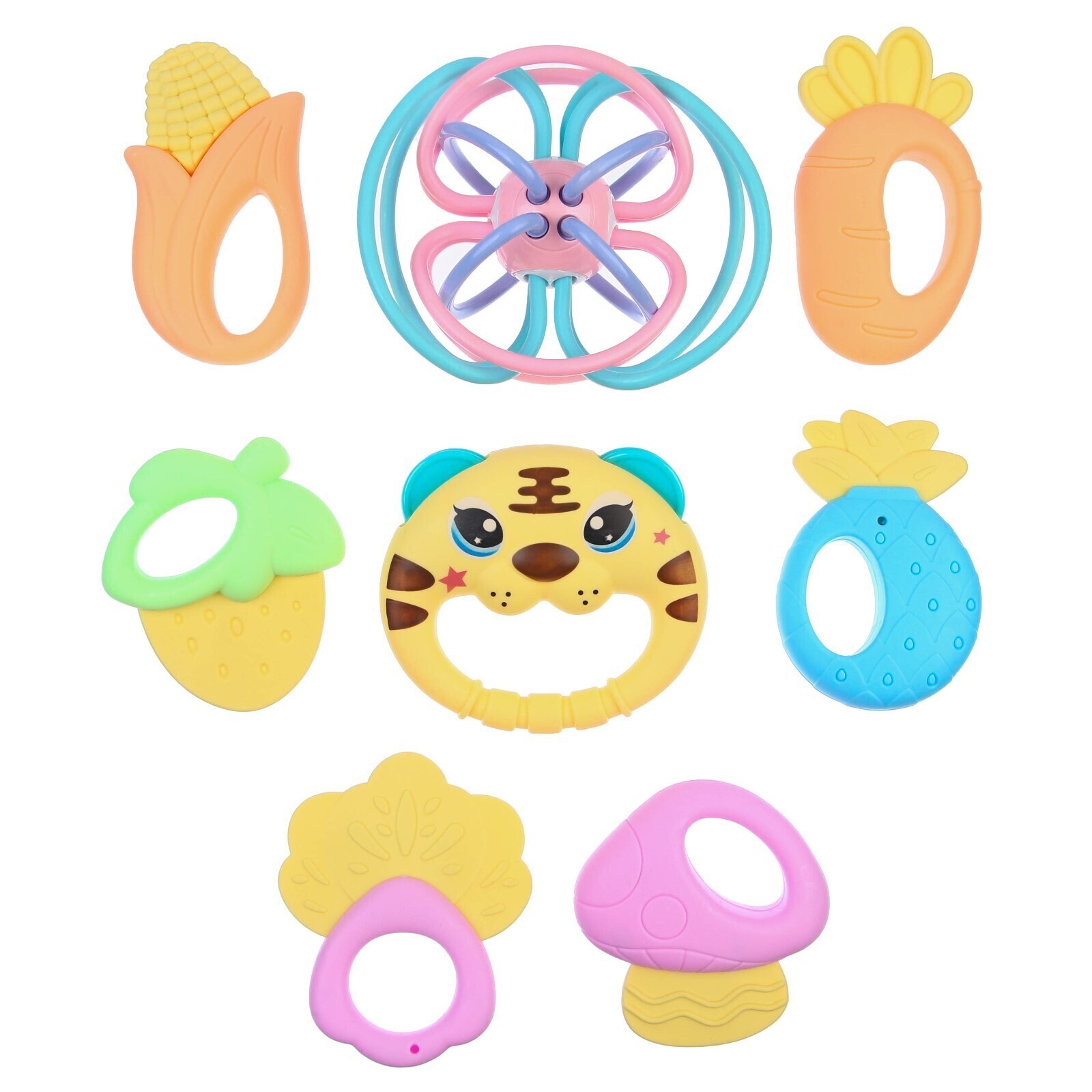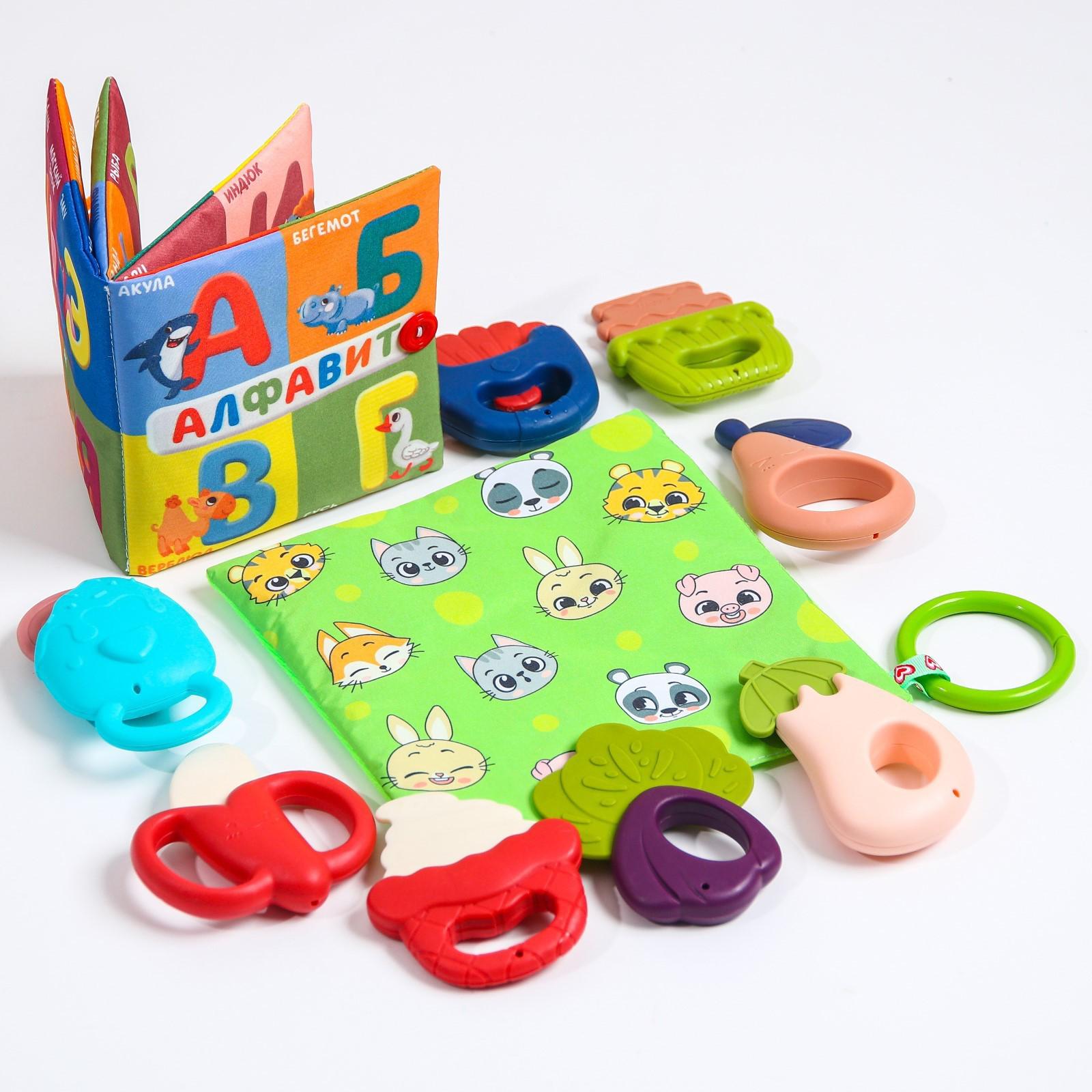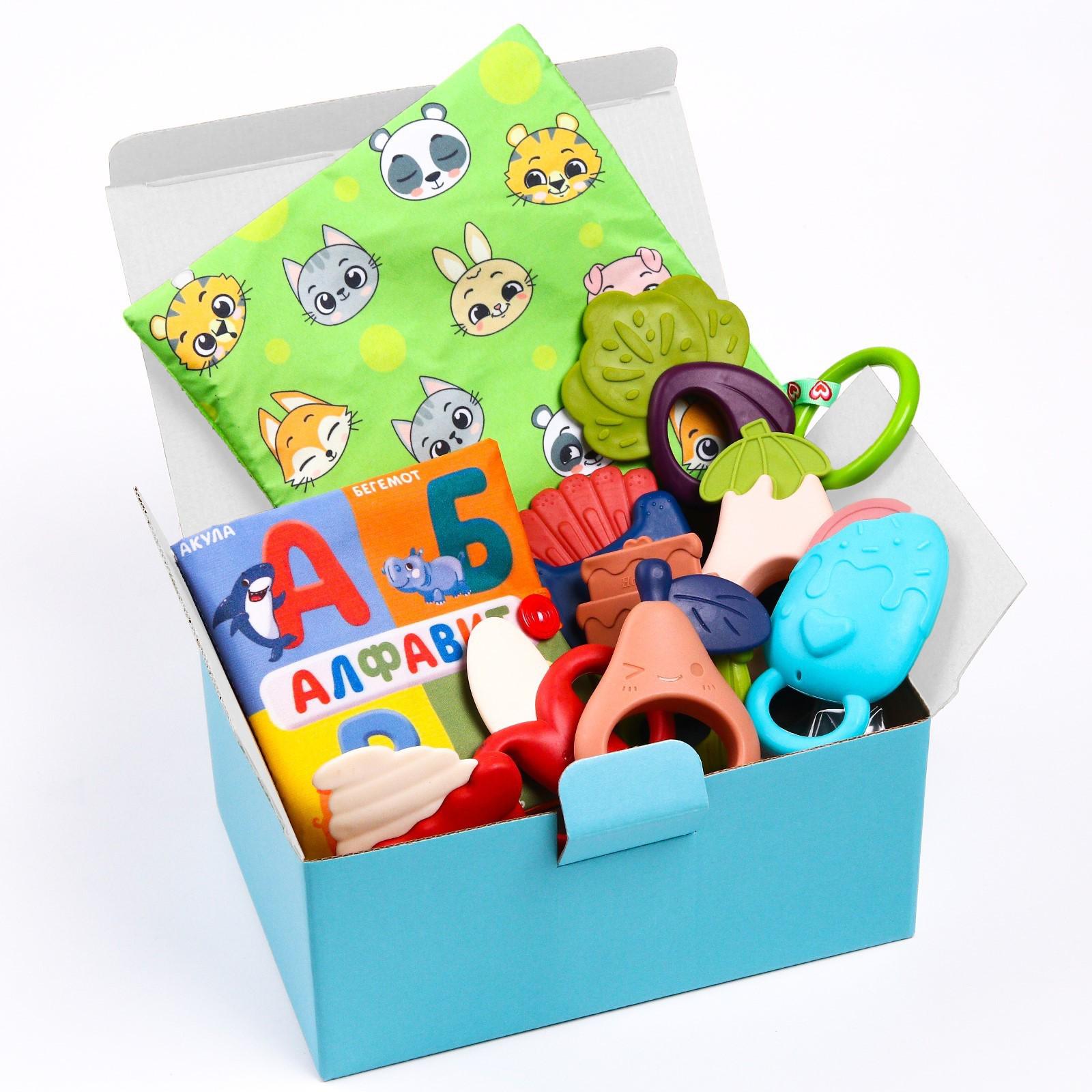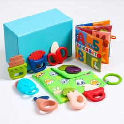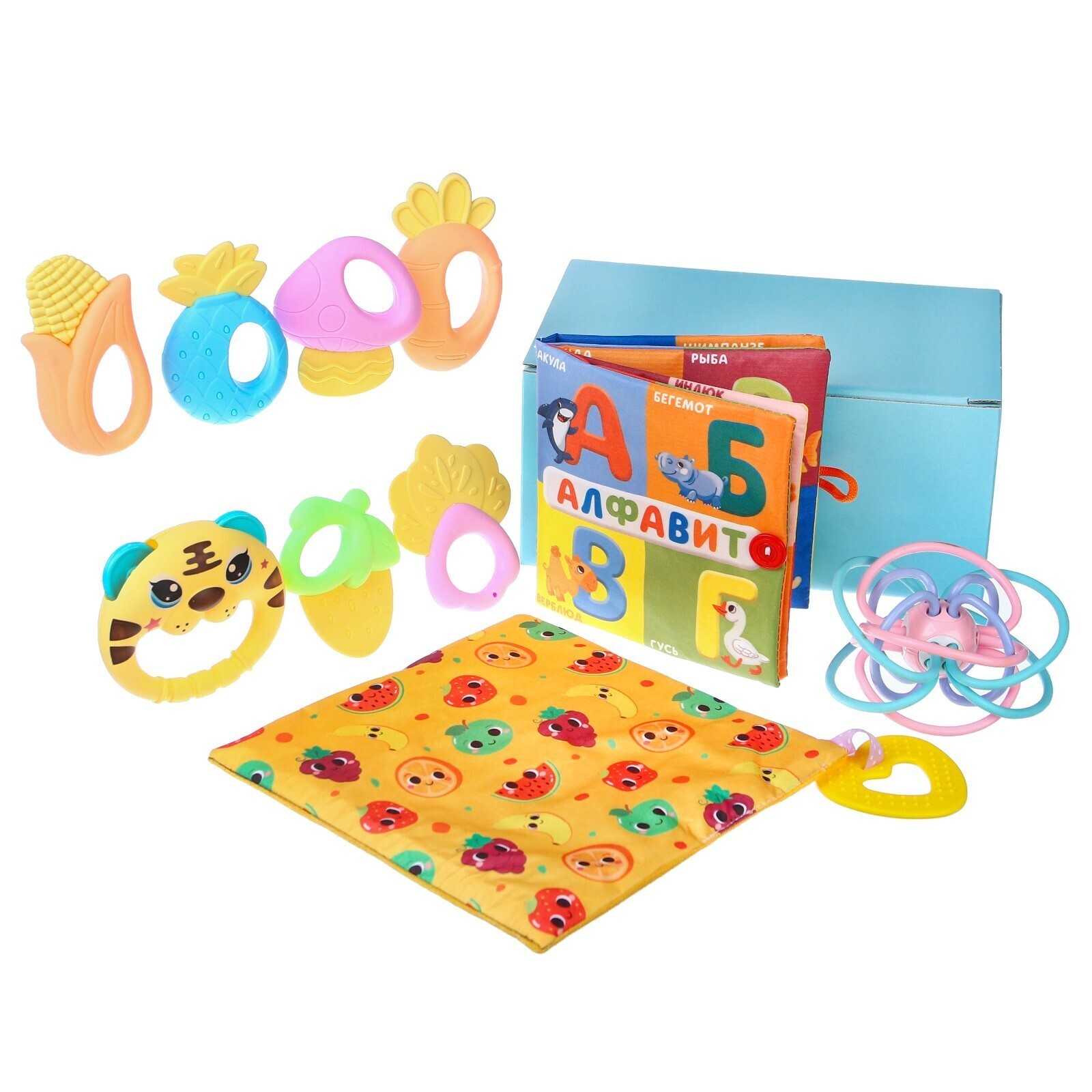 Развивающий набор «Играем с малышом», книжка-шуршалка, платочек, 8 погремушек, в коробке