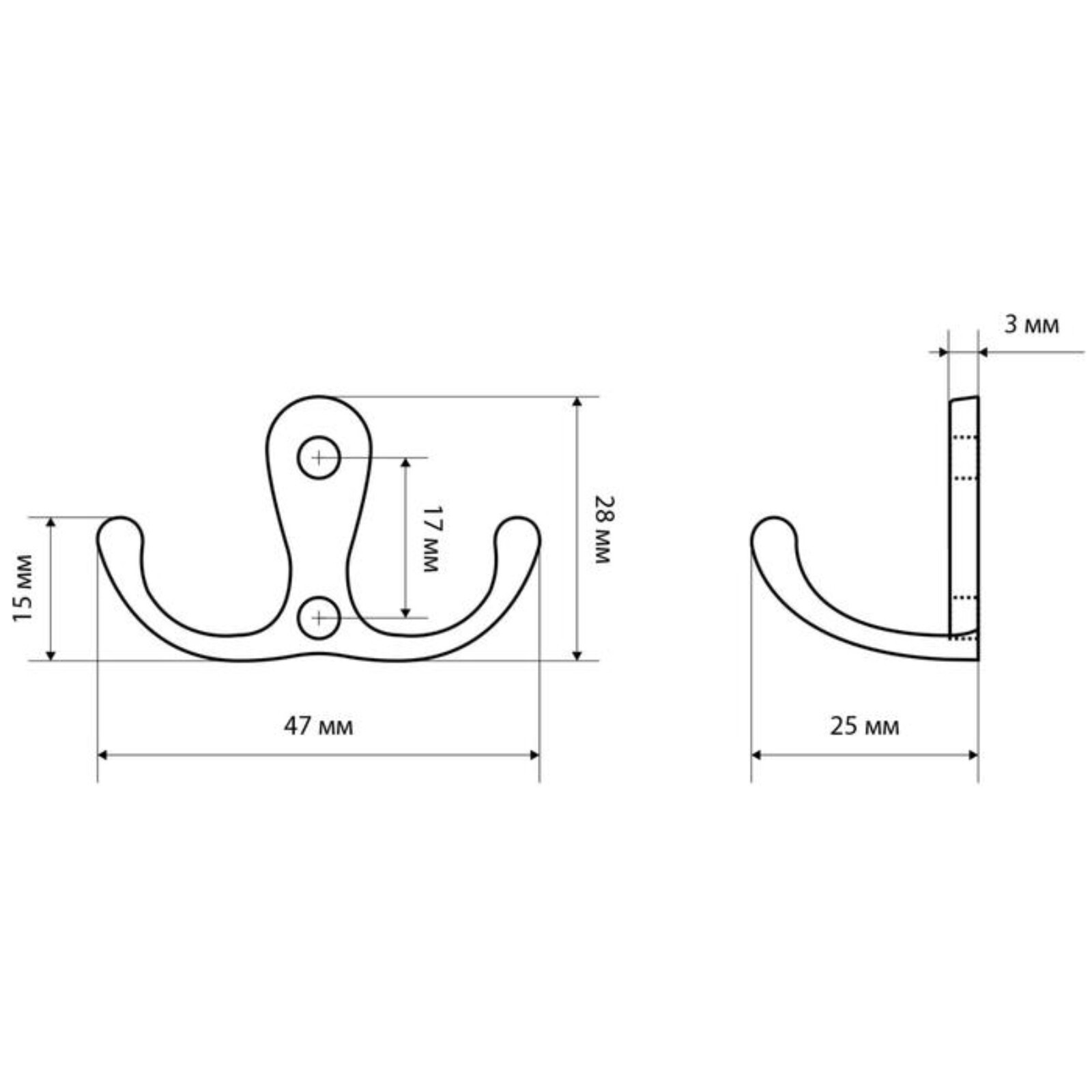 Крючок-вешалка "СТАНДАРТ" 002 CP, цвет хром