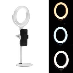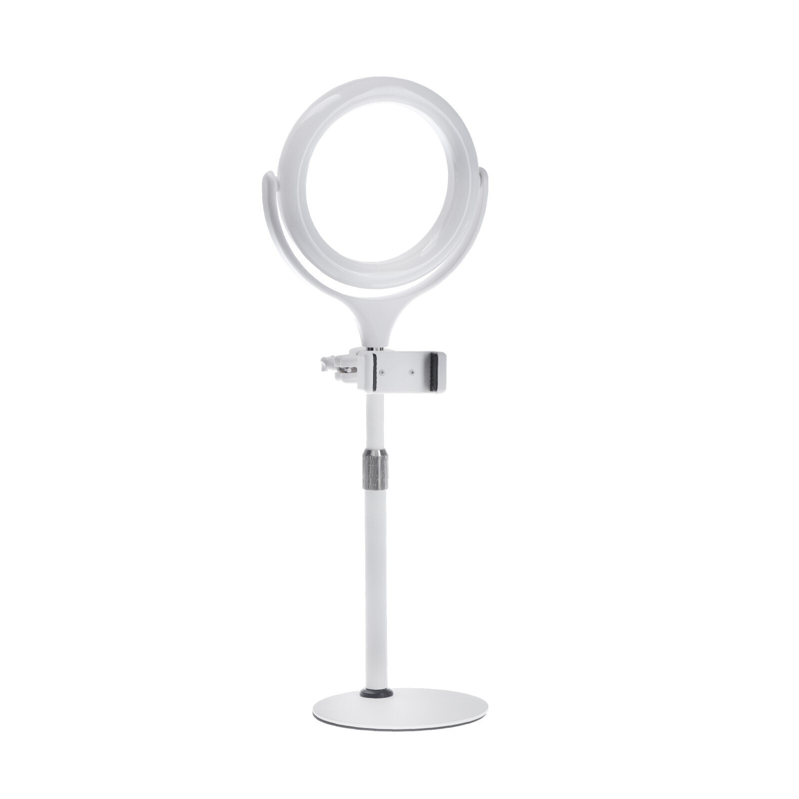 Светодиодная кольцевая лампа на штативе F537, подставка, лампа 16 см, Bluetooth-пульт, белая