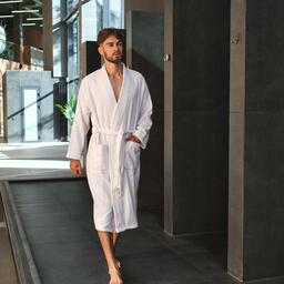 Халат махровый LoveLife "Royal" цв.белый р. 46-48 (М) 100%хл, 330 гр/м2