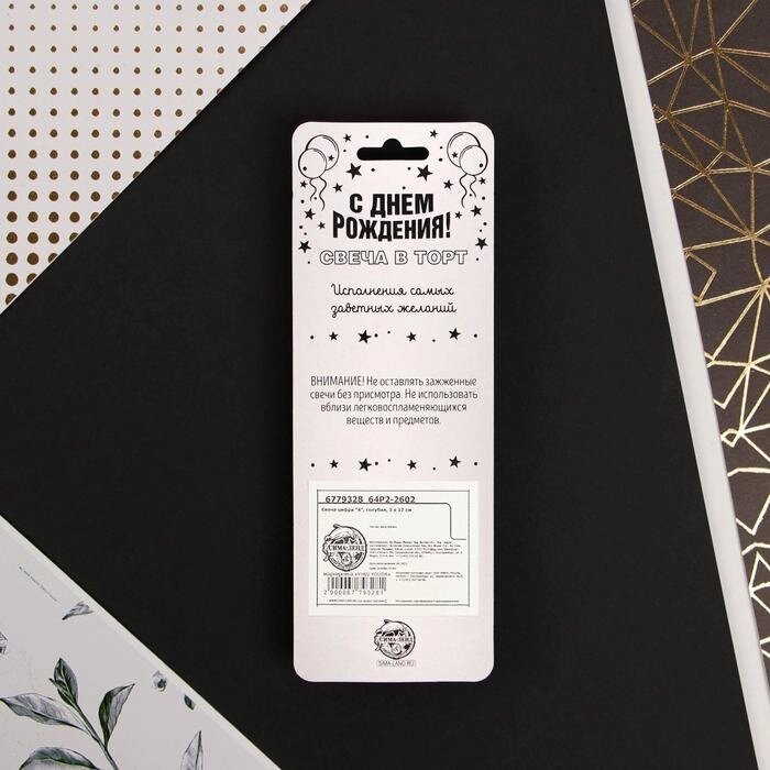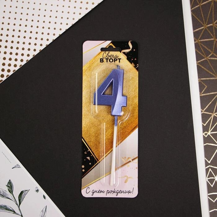 Свеча цифра "4", голубая, 5 х 12 см