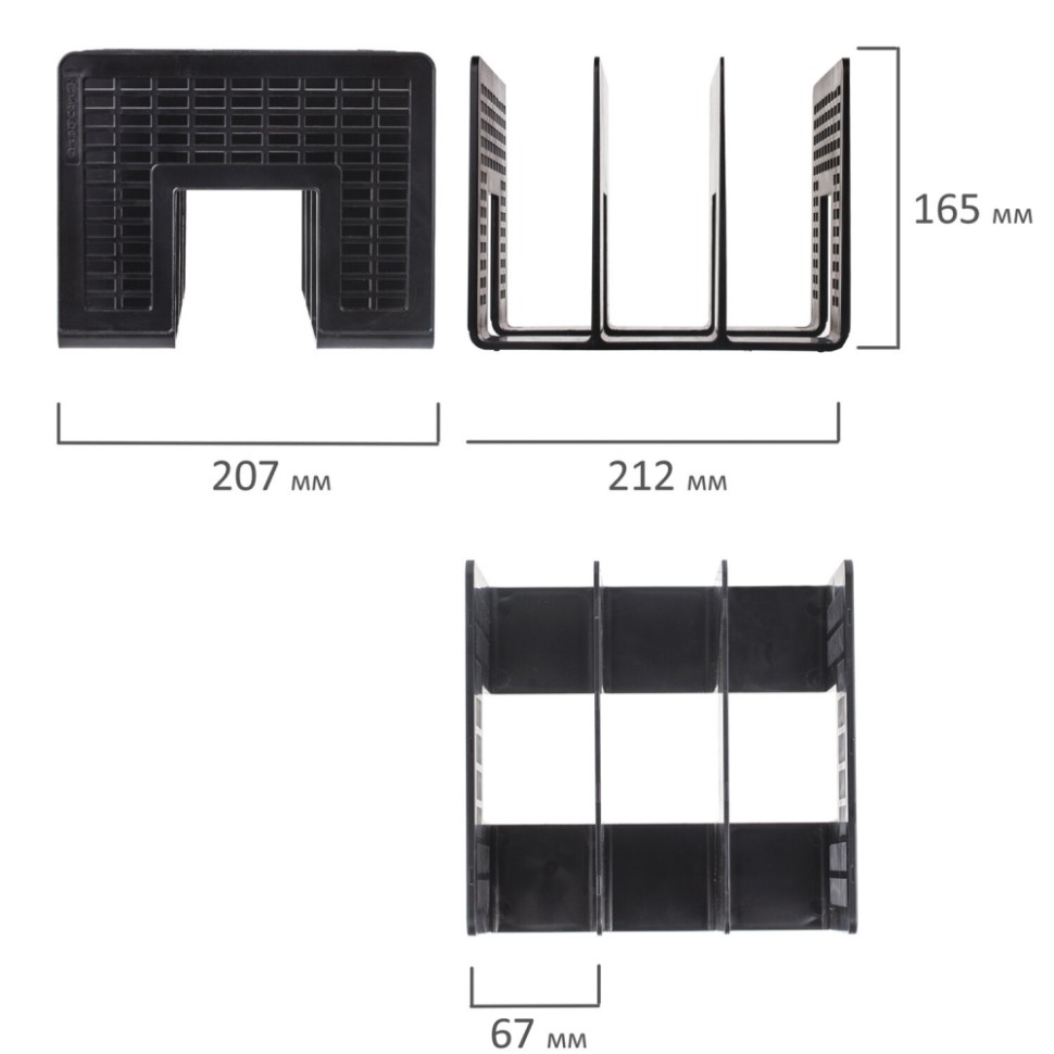 Нарушена упаковка! <209802> Лоток-сортер для бумаг BRAUBERG "Radikal", 3 отделения, 207х212х165 мм, сетчатый, черный () 235364